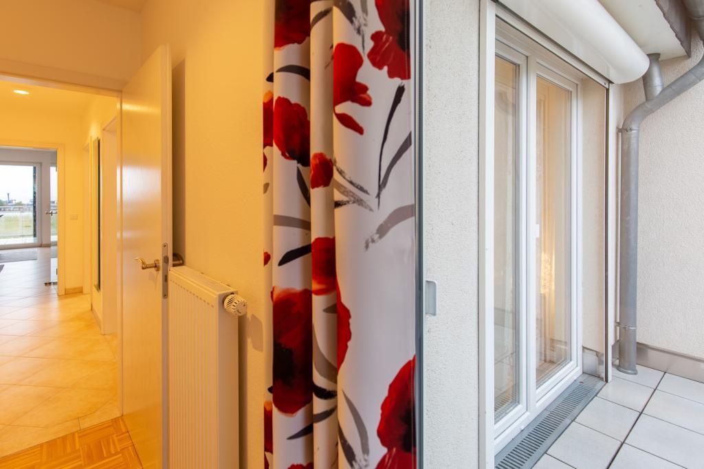 Traumhafte 3-Zimmer-Seesichtwohnung (ca.74m²) bis 3 Personen in der 4.Etage mit Personenaufzug erreichbar. Von hier blicken Sie über den Yachthafen und den Weltschifffahrtsweg #1, 1 Schlafzimmer mit Doppelbett u. Rollläden, 1 Schlafzimmer mit Einzelbett, beide Schlafzimmer mit Holzparkettboden, Du/Wc mit Föhn, Gäste-Wc, Wohnzimmer (gefliest), Küchenzeile mit Geschirrspüler, Backofen und Kühlschrank (ohne Gefrierfach), Senseo-Kaffeemaschine, Sat-TV, kostenloses W-Lan Internet, zwei Balkone (nord und süd), Parkplatz #7, keine Haustiere erlaubt und natürlich Nichtraucher.