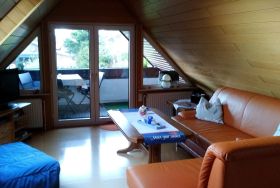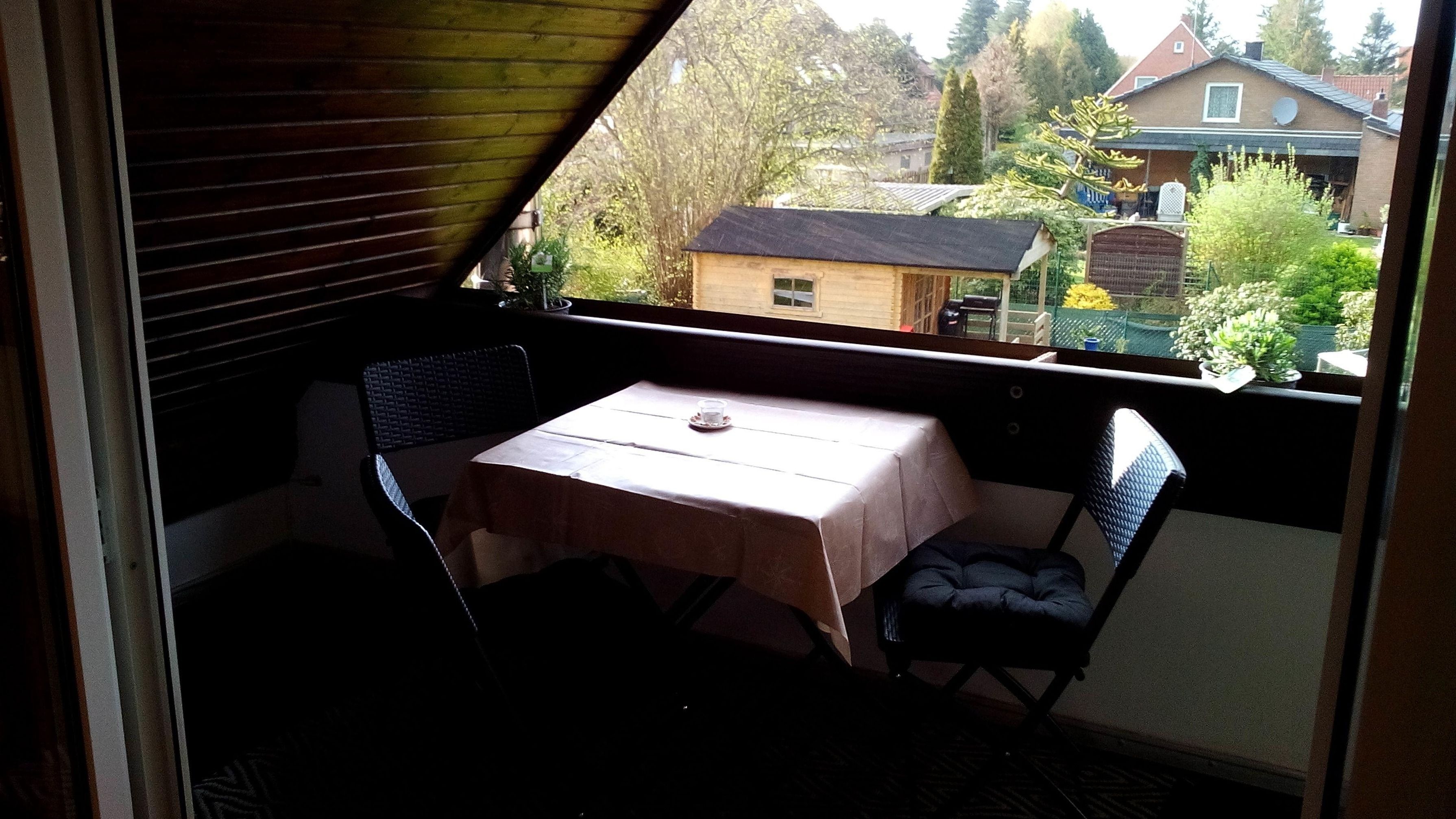 Gemütliche Ferienwohnung (Dachgeschoss) mit Balkon für 2 Personen in ruhigem Wohngebiet in Burhave. WLAN, Bettwäsche, Handtücher und Tiere inklusive.