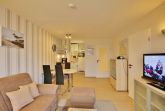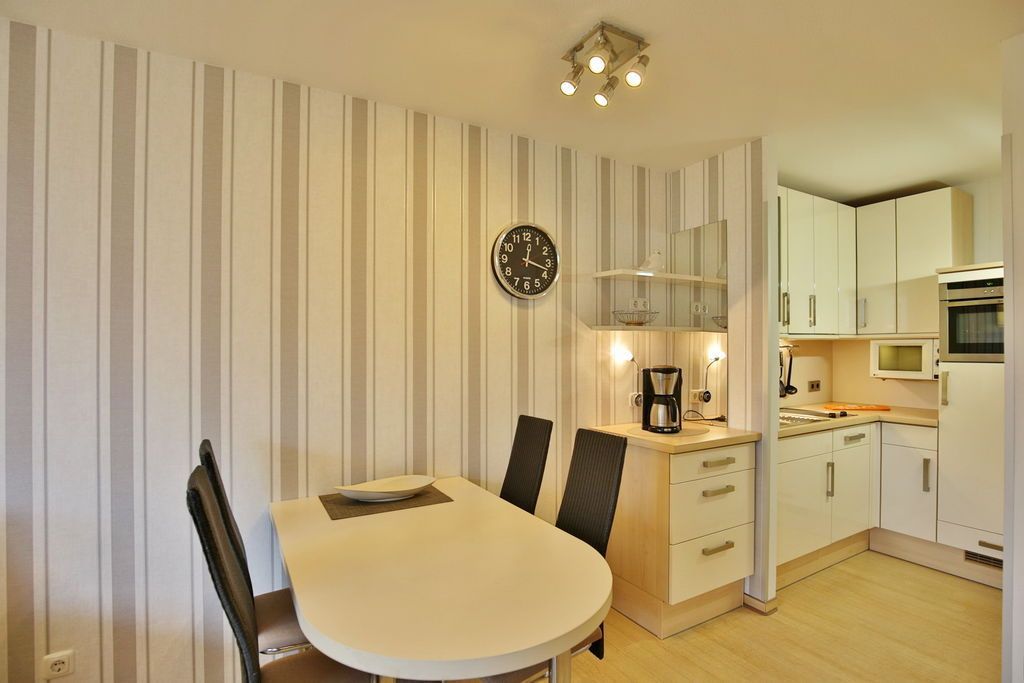 Schöne 2-Raum-Wohnung auf ca. 40m², 3. Etage, komplett ausgestattet bis 4 Pers., 1 Schlafzimmer mit 2 Einzelbetten, 1 kombiniertes Wohn/Schlafzimmer mit Eckschlafcouch, Sat-TV, kostenloses W-Lan, neue Einbauküche mit Mikrowelle, Backofen, Geschirrspüler. Dusche/WC, Flur, Balkon (ost, mit Balkonmöbeln & Sonnenschirm, saisonabhängig) mit Teilseesicht, keine Haustiere, Nichtraucher, Pkw-Stellplatz in der Tiefgarage #309.