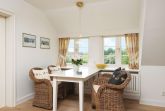 Entspannte Behaglichkeit in zentraler Lage: Die 2-Zimmerwohnung im ersten Stock eines modernen Ferienwohnhauses unter Reet liegt im Herzen des Ortes Kampen, ist aber dennoch alles andere als hektisch. Frische Brötchen und Lebensmittel gibt es im Haus nebenan. Restaurants, Boutiquen und Kampens gesellschaftliches Leben befinden sich direkt „um die Ecke“. Das Wohn-Esszimmer mit seiner offenen Küche und das geschmackvolle Duschbad punktet durch sein Ambiente im modernen Landhausstil. Das helle Doppelschlafzimmer bietet einen Blick in die Idylle von Kampens Gärten.