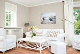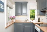Bei der Ausstattung dieser Haushälfte wurde an nichts gespart: Die Holzeinbauten sind edel und im Sylter Stil. Im Erdgeschoss setzen die antiken Terracottaböden genauso einen Akzent wie die abgeschlossene hübsche Landhausküche in edlem Grau. Der Wohn-/Essbereich bietet viel Platz und wird gekrönt von einer Frühstücksterrasse nach Osten und einer Sonnenterrasse nach Süden. Im Obergeschoss erwarten Sie ein Doppelschlafzimmer mit WC en suite und ein Einzelschlafzimmer mit GrandLit, sowie ein separates Duschbad. Ganz besonders kuschelig ist die Schlafgelegenheit in der offenen Galerie des Spitzbodens. Das Untergeschoss ist über eine Treppe aus dem Wohnzimmer zu erreichen, neben einer Sauna-/Sanariumanlage mit kleiner Sitzecke befinden sich hier noch ein Weinkühlschrank, ein Doppelschlafzimmer mit Einbauschränken und ein Vollbad. Alle Schlafzimmer verfügen über einen TV. Ober- und Untergeschoss sind mit Sisalauslegeware ausgestattet.