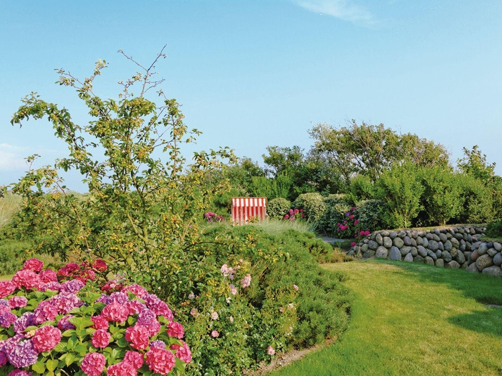 Eine Perle der Kampener Urlaubskultur: Das Haus zum Leuchtturm ist von einem herrlich angelegten Garten umgeben, der den Blick bis zum Watt freigibt. Naturtöne bestimmen das Interieur des Hauses. Zu dem großzügigen Wohnzimmer mit Panoramascheibe, Wohnl...