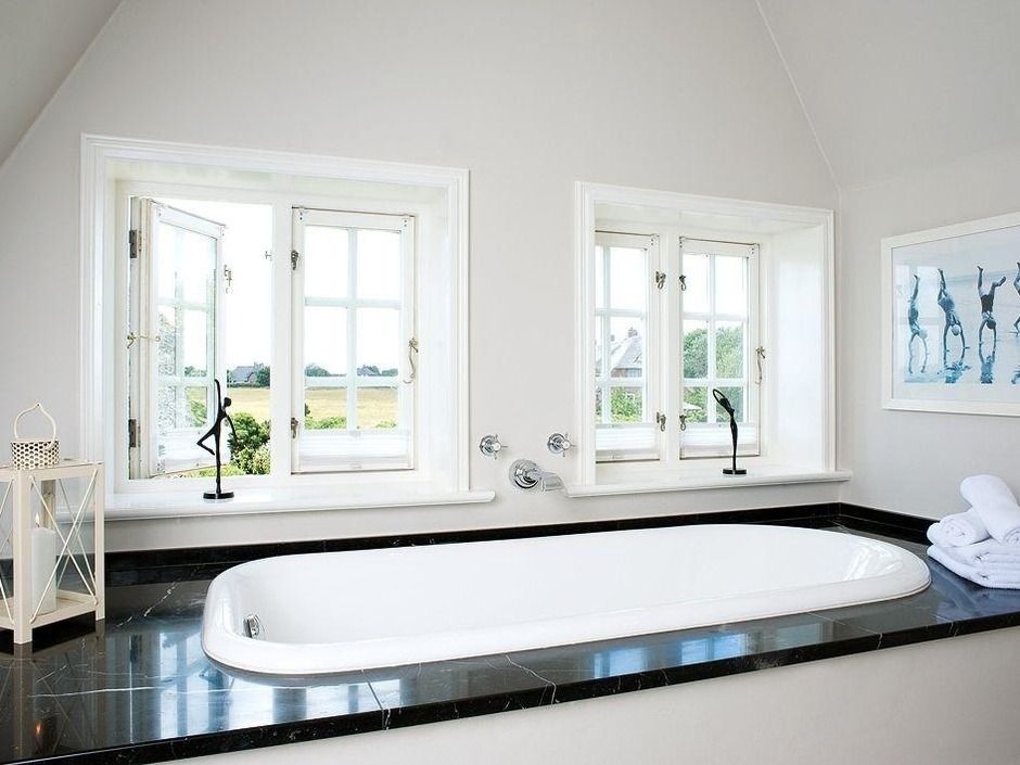 Eine Perle der Kampener Urlaubskultur: Das Haus zum Leuchtturm ist von einem herrlich angelegten Garten umgeben, der den Blick bis zum Watt freigibt. Naturtöne bestimmen das Interieur des Hauses. Zu dem großzügigen Wohnzimmer mit Panoramascheibe, Wohnlandschaft und Zugang zur Sonnenterrasse gen Süden, kommen im eleganten Erdgeschoss noch eine Wohnküche mit kleiner Frühstücksterrasse und ein Gäste-WC hinzu. Im Obergeschoss erwartet Sie ein imposantes Schlafzimmer mit Giebel und ein Zimmer mit Grandlit, sowie ein Wannenbad mit Ahhh-Effekt und ein Duschbad. Herrliche Aussicht ist in allen Zimmern inklusive. Im Untergeschoss des Traumhauses gibt es ein weiteres schmuckes Doppelzimmer, ein Duschbad mit Sauna und ein großzügiges Einzelschlafzimmer. Naturstein- und Holzfußböden runden das Quartier ab. Platz und Raum, Eleganz und edle Materialien - nicht zuletzt der Leuchtturmblick lassen hier nichts vermissen.