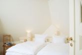 Landhausromantik vom Feinsten: Eine zauberhafte Friesen-Haushälfte im ruhigen Norden Kampens – von Strand und Watt nur einen kleinen Spaziergang entfernt. Zu den Annehmlichkeiten gehören hier besonders die Tischlereinbauten, der herrlich bepflanzte Garten und die hochwertige Ausstattung auf allen drei Ebenen. Im Erdgeschoss erfreuen die offene Küche, eine gemütliche Essecke mit Blick durch die Terrassentür in den Garten und der Kamin das Auge. Einen kleinen Fernseher finden Sie versteckt im Schrank. Im Obergeschoss erwartet Sie ein Doppelschlafzimmer und ein Wannen-Duschbad. Im Untergeschoss dann eine gemütliche Suite – ein Doppelzimmer mit zwei Einzelbetten, eine hübsche Lese-Lounge mit TV und ein großzügiges Duschbad.