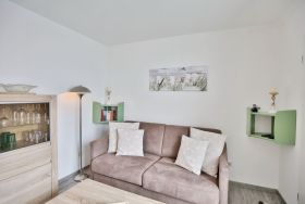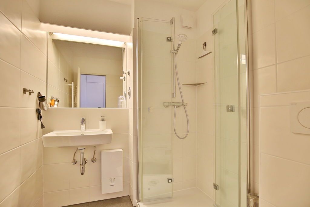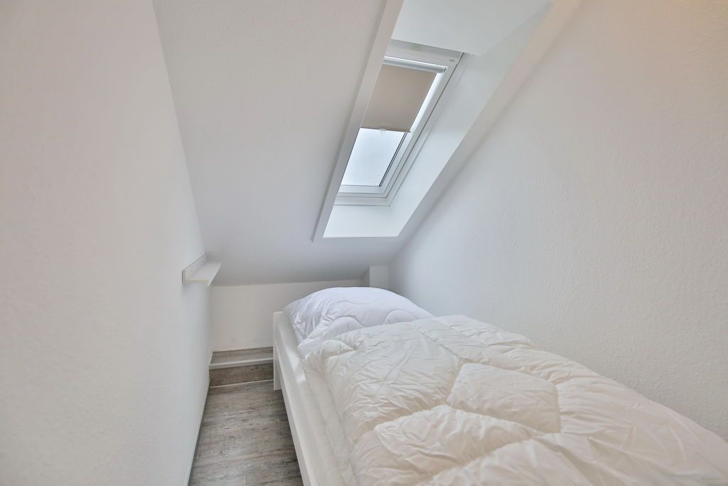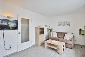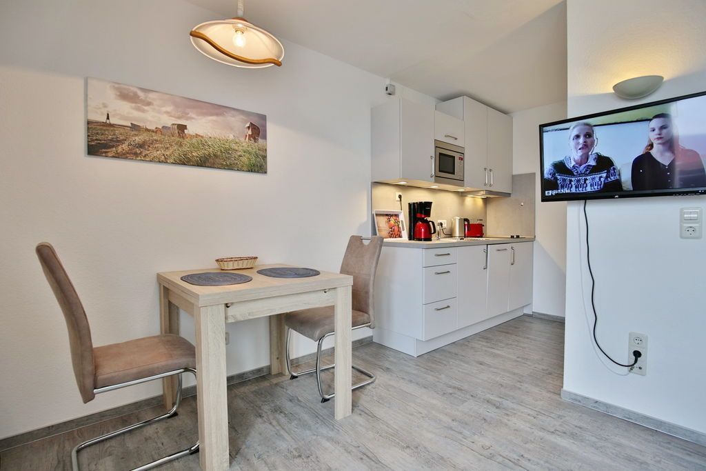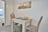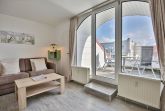 Frisch renoviertes 1-Raum-Appartement auf ca. 28m², 4. Etage, Nichtraucher, komplett ausgestattet bis 2 Pers., 1 kombiniertes Wohn/Schlafzimmer mit Schlafsofa, SAT-TV, kostenloses W-Lan, Küchenzeile mit Ceranfeld, Geschirrspüler & Mikrowelle, Dusche/WC, Flur, Dachterrasse (ost) mit Seesicht, PKW-Stellplatz #407 auf dem Außengelände, keine Haustiere gestattet.