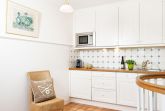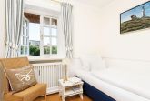 Gemütlichkeit trifft Landhauscharme: Zum WohlfühlStandard gehören eine große Terrasse mit Strandkorb, der Traumblick durch die große Fensterfront nach Nordwesten, ein Kaminofen für romantische Abende vor dem gemütlichen Sofa und die in den Wohnraum integrierte Küchenzeile. Im Erdgeschoss finden Sie zudem ein Einzelschlafzimmer und ein modernes Duschbad. Das Untergeschoss erreichen Sie über eine Wendeltreppe. Hier sind die beiden Doppelschlafzimmer behaglich eingerichtet und ein weiteres Duschbad präsentiert sich hell mit friesischem Chic.