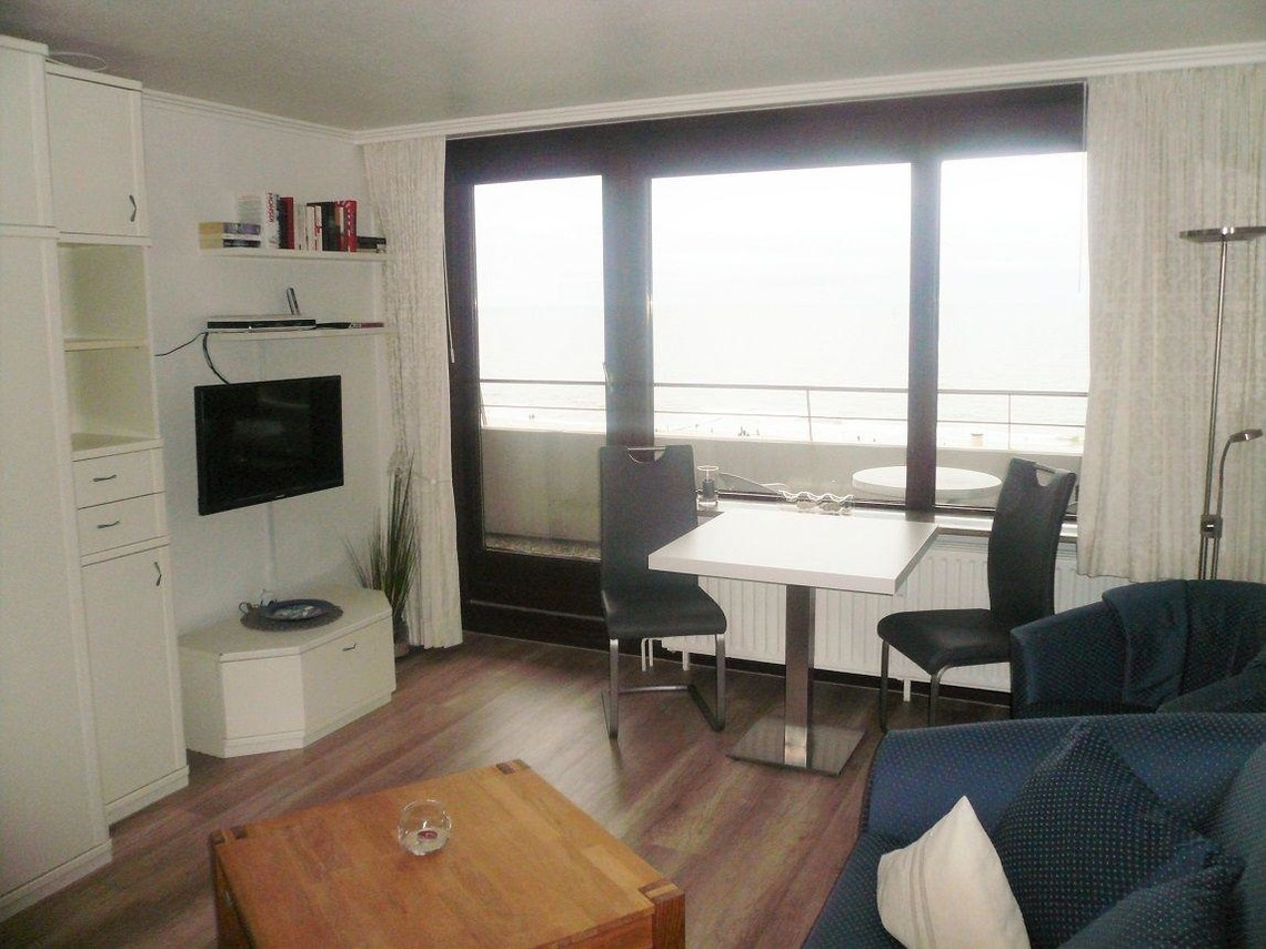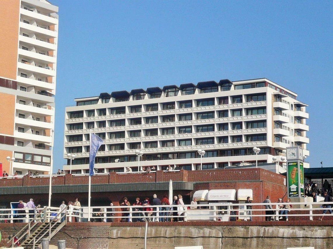 Das Appartement mit Westbalkon und Meerblick befindet sich in der 3. Etage eines gepflegten Appartementhauses im Kurzentrum, direkt am Hauptstrand. Das Haus liegt zentral in Westerland, zwischen den beiden großen Fußgängerzonen.