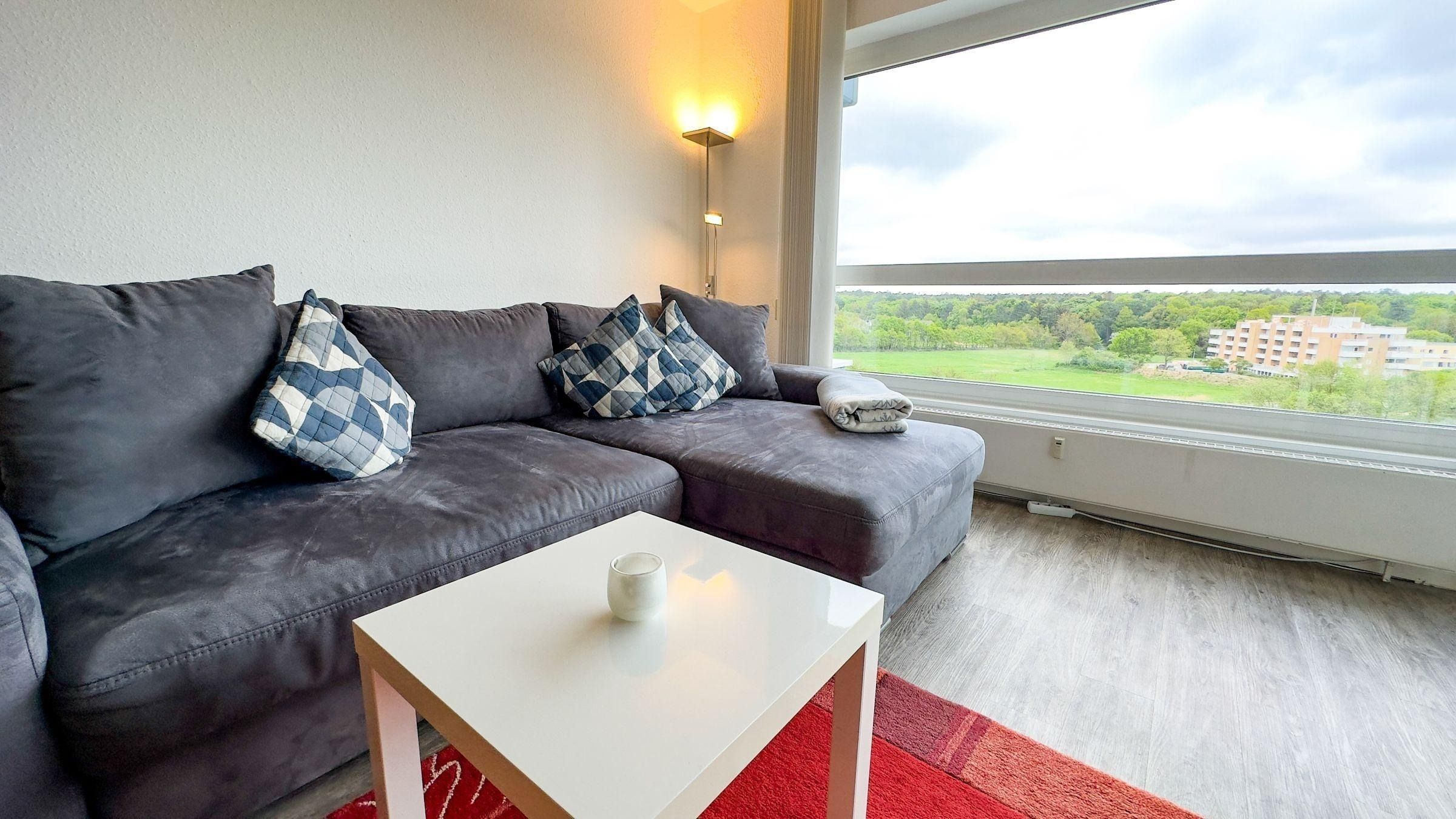 Die Wohnung hat zwei Zimmer, Küche und Bad und eine ca. 4,5 qm große Loggia, die durch eine Verglasung auch bei schlechter Witterung gut zu nutzen ist. Im Wohnzimmer befindet sich ein Schlafsofa, ein Schrank sowie ein Flachbild-Fernseher, DVD-Player und ein Radio. Die neue Einbauküche verfügt über Backofen und Geschirrspülmaschine. Das Bad verfügt über eine Badewanne, Waschbecken, Spiegel und WC. Im Flur davor befindet sich ein ausreichend großer Kleiderschrank. Im Schlafzimmer befinden sich ein Doppelbett (160x200cm). Für die kleinen Urlauber stehen zwei Kinderreisebetten und Kinderhochstühle zur Verfügung.