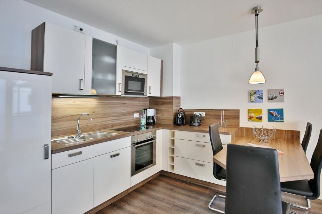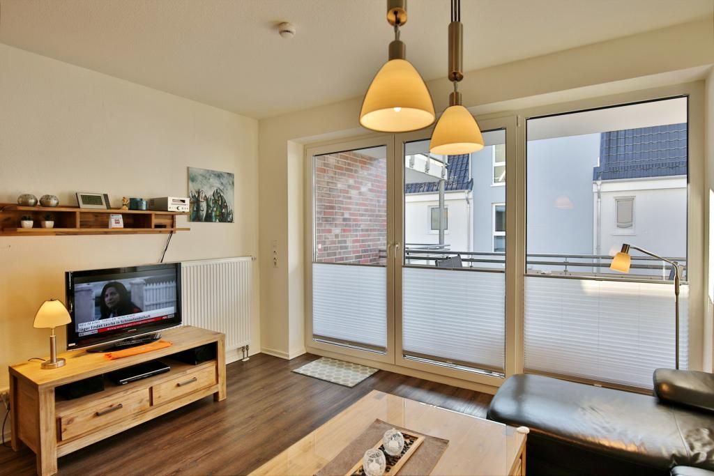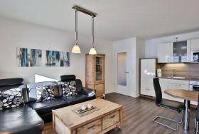 Sehr schöne, vollständig ausgestattete Wohnung über ca.49m², 1.Etage mit großem, geschützten Balkon (süd), 1 Schlafzimmer mit Doppelbett und TV, Wohn-/Schlafzimmer mit Schlafcouch, SAT-TV, DVD, Stereo, kostenloses W-LAN, komplette Küchenzeile mit Geschirrspüler, Backofen, Mikrowelle, Gefrierfach, Du/Wc, Föhn, Rollladen an allen Fenstern, Pkw-Stellplatz #4, Nichtraucher, keine Haustiere gestattet.