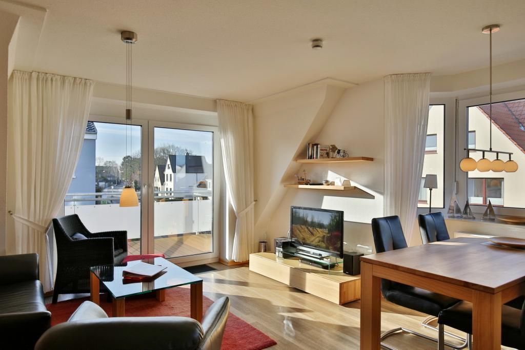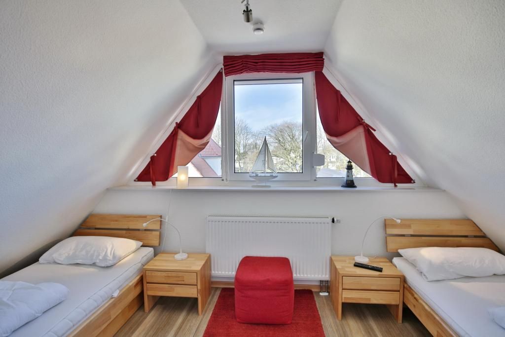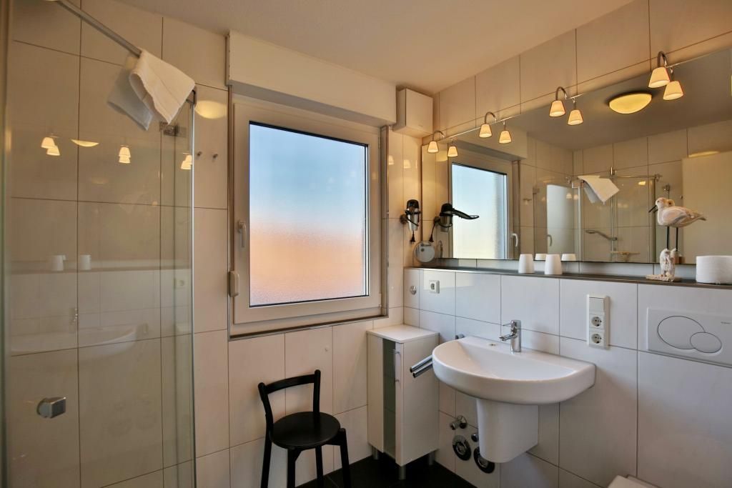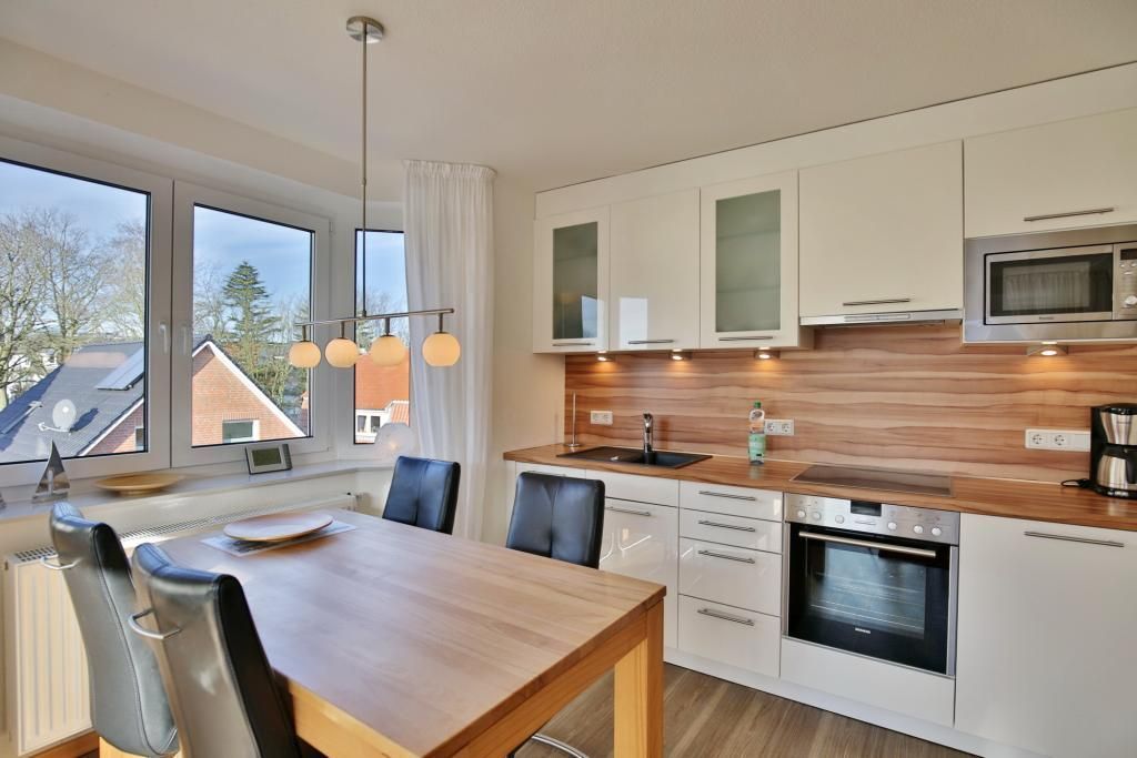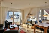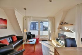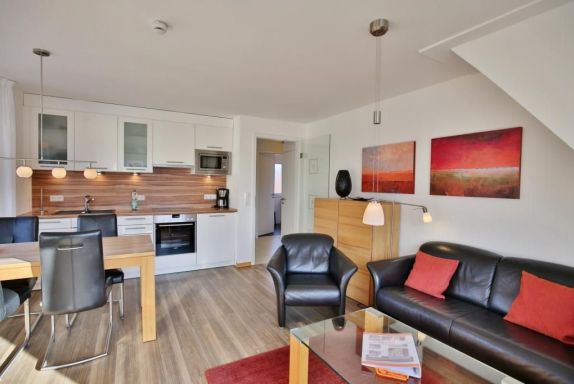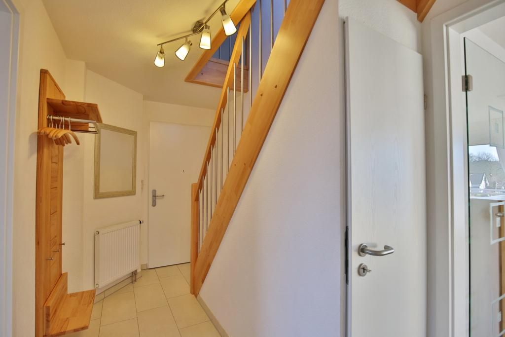 Sehr schöne, helle 3-Raum-Maisonette-Wohnung (58m²) bis 4 Pers., 2.Etage, 1 Schlafzimmer mit Doppelb., 1 Schlafzimmer im Dachgeschoss mit Einzelbetten, Du/Wc u. Gäste-Wc, Föhn, Wohnzimmer mit vollständiger Küchenzeile (Gefrierfach, Back., Mikrow., Geschirrspüler) 2xSAT-TV, DVD, Stereo, W-LAN kostenlos, großer Balkon (süd), Rollläden, Pkw-Stellplatz #9, keine Haustiere erlaubt, Nichtraucher.