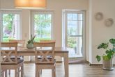 Die Ferienwohnung Schiffsdeck im Erdgeschoss ist hochwertig und geschmackvoll im hellen, modernen Landhausstil eingerichtet. In der lichtdurchfluteten Wohnung finden Sie viel Platz und Komfort für Ihren Traumurlaub. Der großzügige Schnitt der Wohnung lädt zum Erleben ein, ob gemeinsam oder lieber alleine, hier genießen Sie viel Freiraum, aber auch individuelle Rückzugsorte. Auf der großen Sonnenterrasse, die direkt vom Wohn- und Essbereich begehbar ist, finden Sie hochwertige Gartenmöbeln, einen Weber Gasgrill und natürlich einen Sonnenschirm. Der Garten mit viel Rasenfläche ist ideal für Familien mit Kindern. Die Wohnung ist bedingt barrierefrei, auf Wunsch steht Ihnen ein mobile Rollstuhlrampe zur Verfügung. Von der Nebeneingangstür zusätzlich zum Haupteingang könne Sie die Wohnung direkt vom Carport aus betreten. Zwei geräumige Schlafzimmer (Doppelbett 180x200) mit TV laden hier nach einem tollen Urlaubstag zum Träumen ein. Die Schlafzimmer haben zusätzlich zu den Plissees elektrische Aussenrollläden, damit Sie auch im Sommer nicht auf einen erholsamen Schlaf verzichten müssen. Der Wohn- und Essbereich bietet mit seinen bodentiefen Fenstern einen herrlichen Blick auf den NOK. Träumen Sie beim Kochen in der hochwertig ausgestatteten Küche von großen Pötten und der weiten Welt oder genießen Sie von der großen Wohnlandschaft das ständige pendeln der Fähre. Die Wohnung ist komplett ausgestattet, neben dem 55 Zoll TV mit DVD Player und Sonoro Soundsystem, im Wohnbereich, finden Sie eine feine Auswahl an Lektüren und Spielen. Unsere kleinen Gäste liegen uns sehr am Herzen, für sie stellen wir Ihnen gerne unsere Kleinkindausstattung zur Verfügung. Genießen Sie entspannte Sonnentage in der sehr gepflegten Gartenanlage mit viel Platz zum relaxen, Kraft tanken, entspannen oder toben und spielen. Staunen Sie über die vorbeiziehenden Schiffe oder beobachten Sie das rege Treiben der NOK- Fähre.