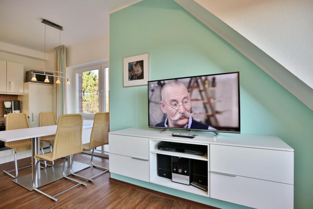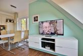 Sehr schöne, helle 3-Raum-Maisonette-Wohnung, 1.Etage, 1 Schlafzimmer mit Doppelb., 1 Schlafzimmer im Dachgeschoss mit Doppelbett und separaten WC, Wohnzimmer mit Küchenzeile (Backofen, Mikrowelle, Geschirrspüler) 2x SAT-TV, CD, DVD, kostenloses W-LAN Internet, Du/Wc, großer Balkon (süd) mit Balkonmöbeln und Sonnenschirm (saisonabhängig), Rollladen, reservierter Pkw-Stellplatz vor dem Haus, keine Haustiere erlaubt, Nichtraucher.