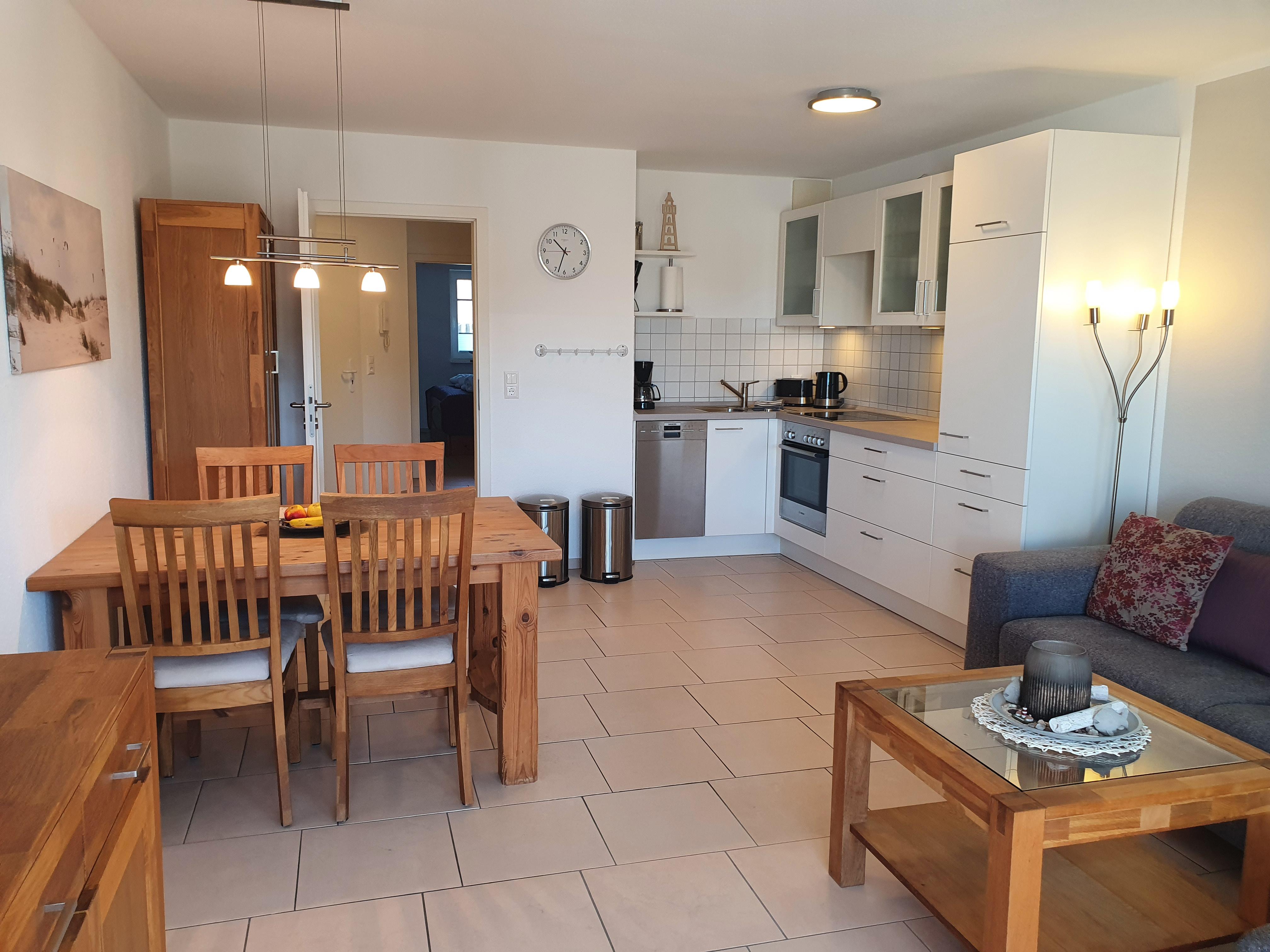 Das kombinierte Wohn- und Esszimmer verfügt über eine große gemütliche Sofalandschaft, kostenloses W-Lan, einem 49 Zoll Smart-TV, Blu Ray Player, Musikanlage, Bücher und Spiele.