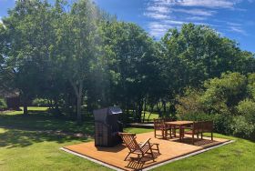 Im Garten stehen Ihnen mehrere Sonnenterassen und Strandkörbe zur Verfügung. Neben viel Platz für Kinder und Hunde gibt es Schaukeln, sowie Grillmöglichkeit - perfekt für einen schönen lauen Abend. Die großzügigen Parkplätze zur exklusiven Nutzung direkt auf dem Grundstück vor der Tür runden das Bild ab. In der 120qm großen Loo-Diele können Fahrräder, etc. sicher abgestellt und E-Bikes geladen werden.
