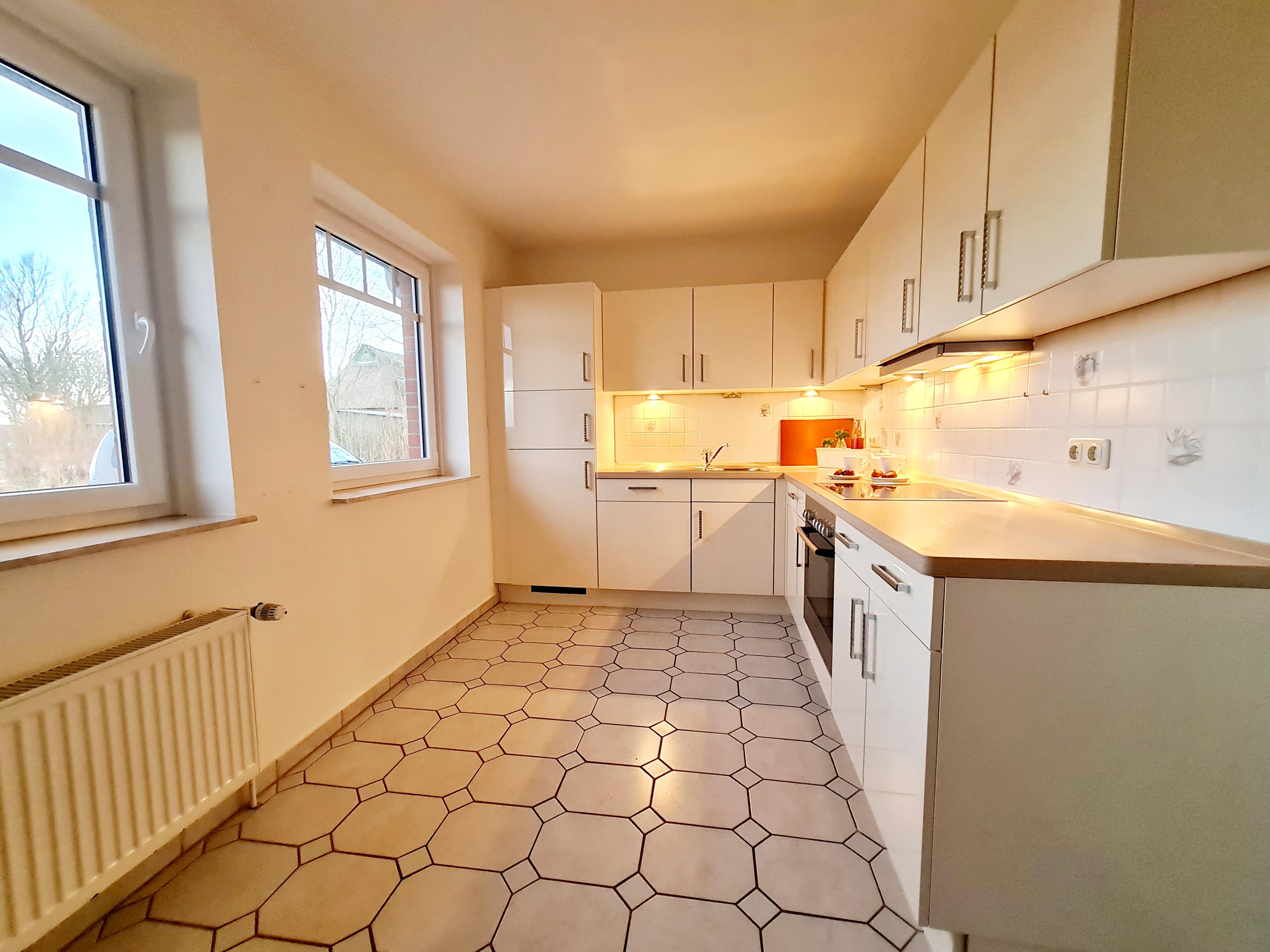 Unsere Ferienwohnung „Marschenblick“ im Ferienhaus zeigt den tollen weiten Blick in unsere Marschlandschaft und ist mit 140 qm unsere größte FeWo. Sie ist ebenerdig und für Rollstuhlfahrer geeignet. Der zentrale Raum in der Wohnung dient als Diele. Hier finden sie einen großen gemütlichen Esstisch mit viel Platz zum „Klönen“(„plaudern“), Essen und Spielen. Von diesem Raum zweigen sich alle Weiteren sternförmig ab: Die große Küche (Herd mit Backofen, Dunstabzugshaube, Kühlschrank mit Gefrierfach, Spülmaschine, Küchenmaschine, Mikrowelle, Wasserkocher, Kaffeemaschine, Toaster) Badezimmer mit befahrbarer Dusche Kinderzimmer mit Etagenbett und einem Einzelbett Elternschlafzimmer mit Doppelbett und Terassentür Großes Wohnzimmer mit Flachbildschirm mit Sat. und Wohnwand Drittes Schlafzimmer mit Doppelbett und Zustellbett Kleines Bad mit Waschbecken und WC WLAN ist im Bauernhaus sowie im Garten und auf dem Hofplatz jederzeit verfügbar und zusätzlich buchbar; die Ferienwohnungen im Ferienhaus sind nicht für den WLAN-Empfang ausgelegt. Wir bitten um Verständnis.