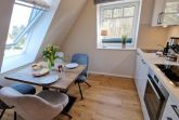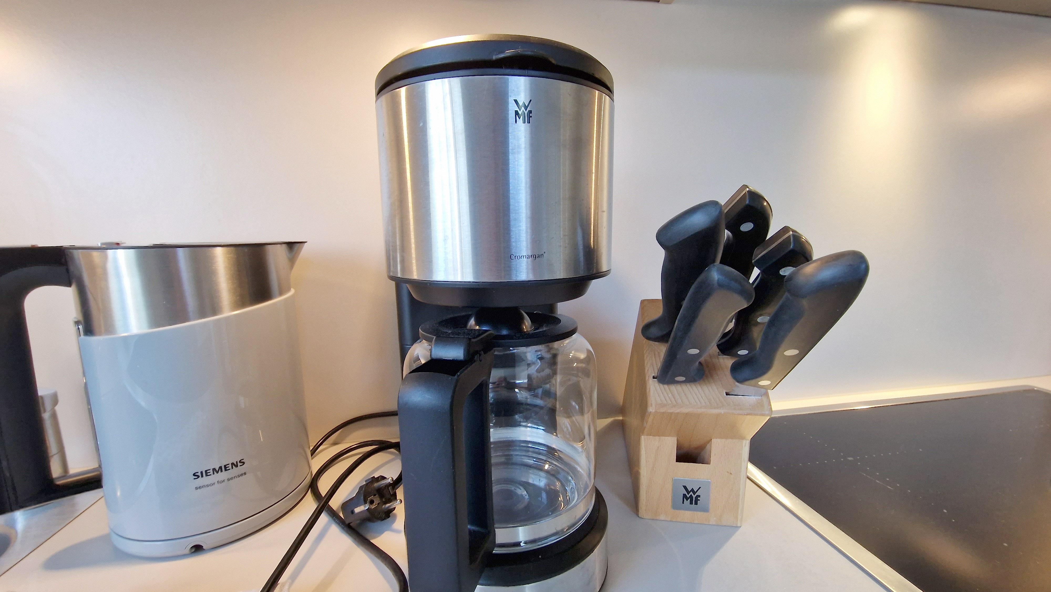 Küche: Küchenzeile, Geschirrspüler, Backofen, Ceranfeld, Kaffeemaschine, Wasserkocher, Toaster, Mixer, Geschirr, Töpfe, Pfannen usw.