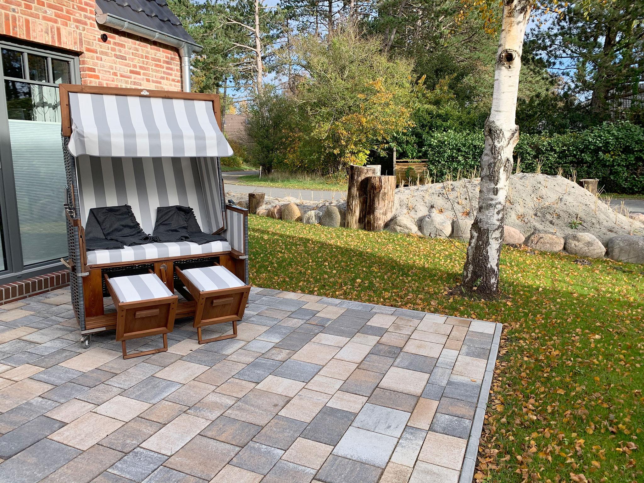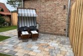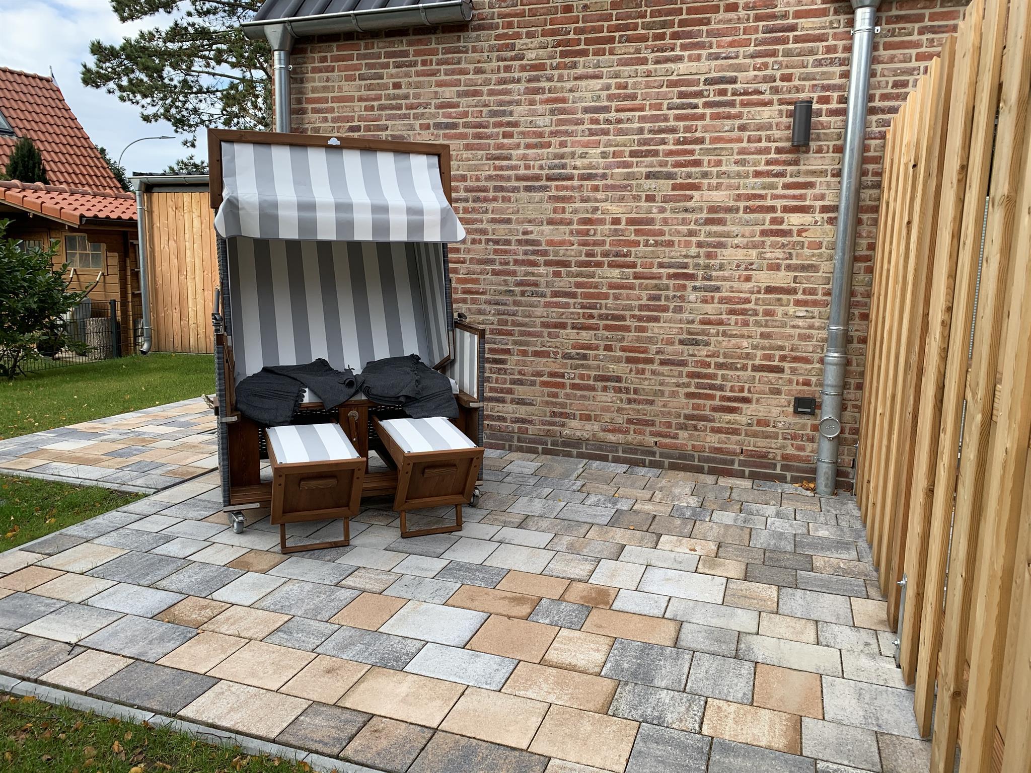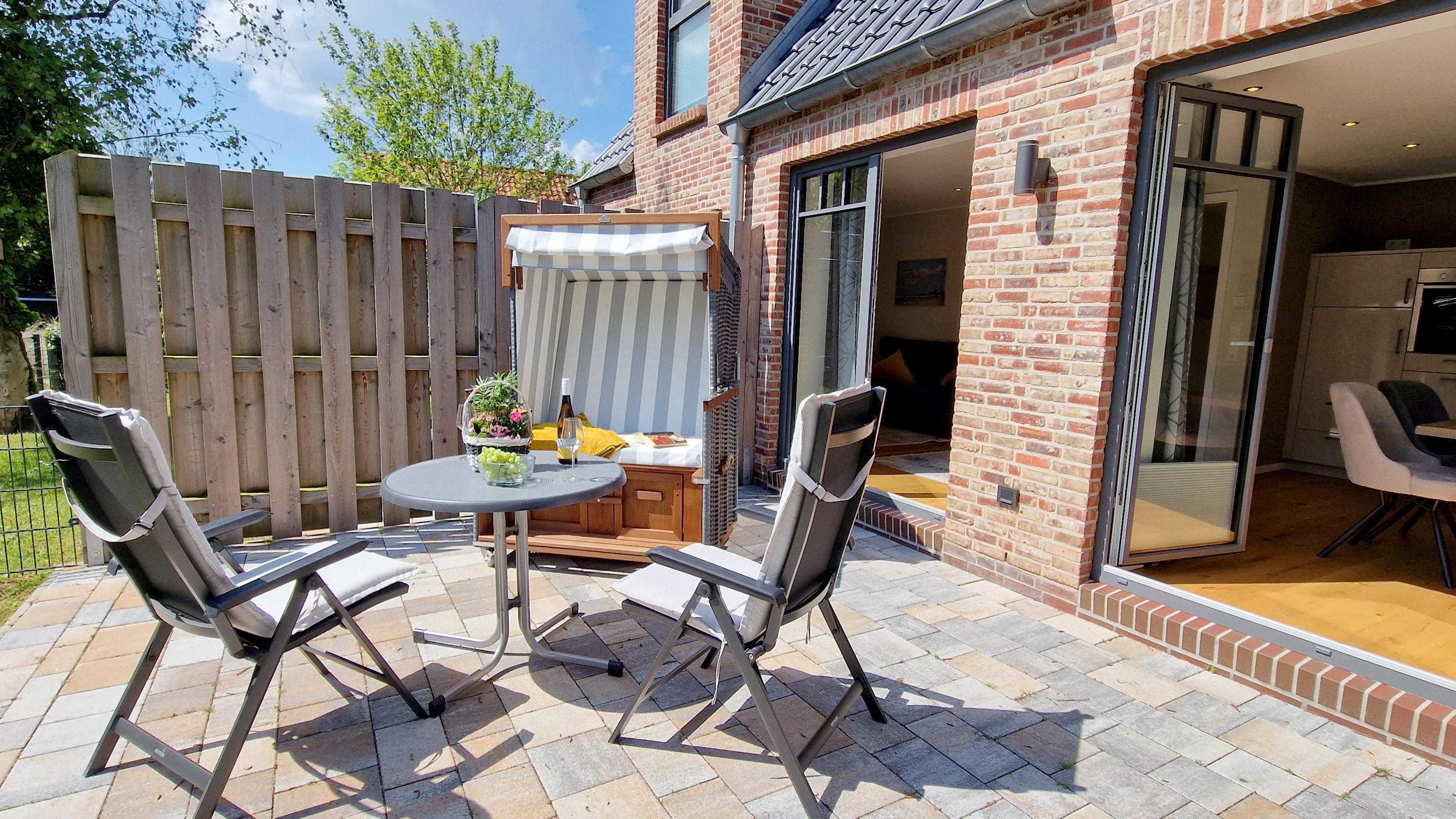 Terrasse: Terrasse mit Gartenmöbeln und Zugang zum Garten