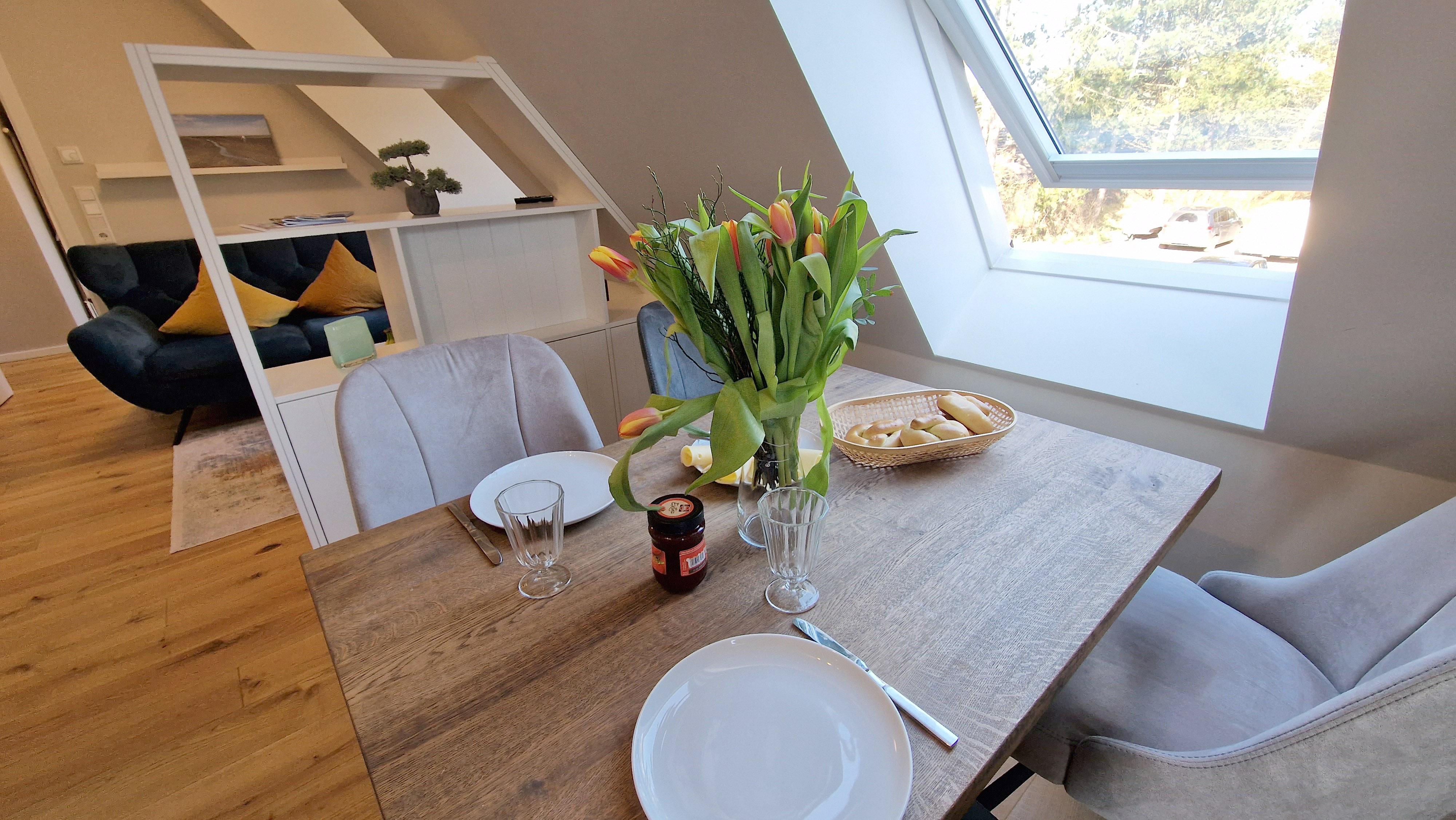 Geniessen Sie Ihren Urlaub in diesem neu errichteten, freistehenden Haus in ruhiger Ortsrandlage von St. Peter Dorf. Es erwartet Sie eine Obergeschosswohnung mit einem grossem, hellem und offenem Wohn-, Essraum mit integrierter Küche. Ein Schlafzimmer mit Doppelbett und ein Gäste-Kinderzimmer mit Schlafsofa, ein Duschbad mit begehbarer Dusche und einer Waschmaschine. In dieser Wohnung können Sie mit bis zu 3 Personen und 1 kleinen Vierbeiner einen wunderschönen Urlaub verbringen. Das Grundstück ist komplett eingezäunt. Ein Parkplatz befindet sich auf dem Grundstück und Ihre Fahrräder stehen sicher in einem abschließbaren Abstellraum. Für E-Bikes gibt es hier sogar eine Steckdose. Eine Terrasse mit Gartenmöbeln runden dieses Urlaubsparadies ab.