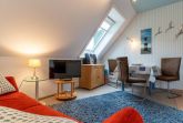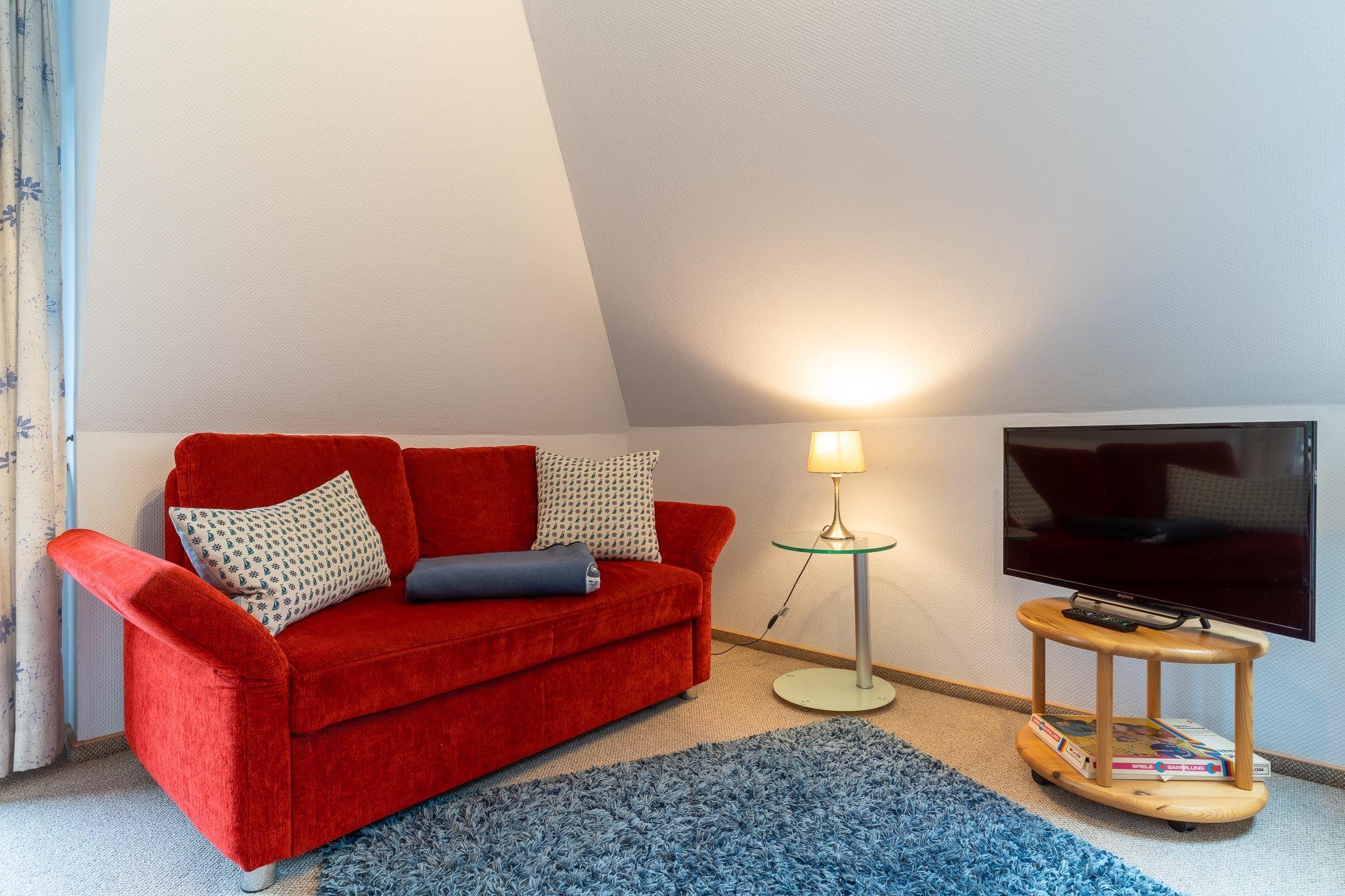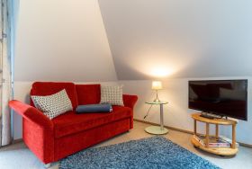 Es handelt sich um eine sehr gemütliche Wohnung mit einem Schlafzimmer mit Doppelbett (160x200cm)und einer zusätzlichen Schlafcouch (120x200cm) mit ausgezeichneter Matratze im Wohnzimmer, also ideal für 2 Personen, und eventuell für eine dritte Person. Im Wohnzimmer befindet sich die Sitzecke mit dem Fernseher, der Essbereich für 3, max. 4 Esszimmerstühlen und die Küchenzeile mit Kochfeld, Backofen und Microwelle. Von dort gelangen Sie auf den geräumigen Balkon, auf dem es sich wunderbar in der Morgensonne Frühstücken lässt. Vom Schlafzimmer kommt man in das kleine Bad mit Duschkabine (70x100cm), Waschbecken und Toilette.