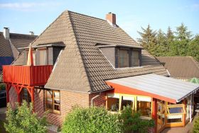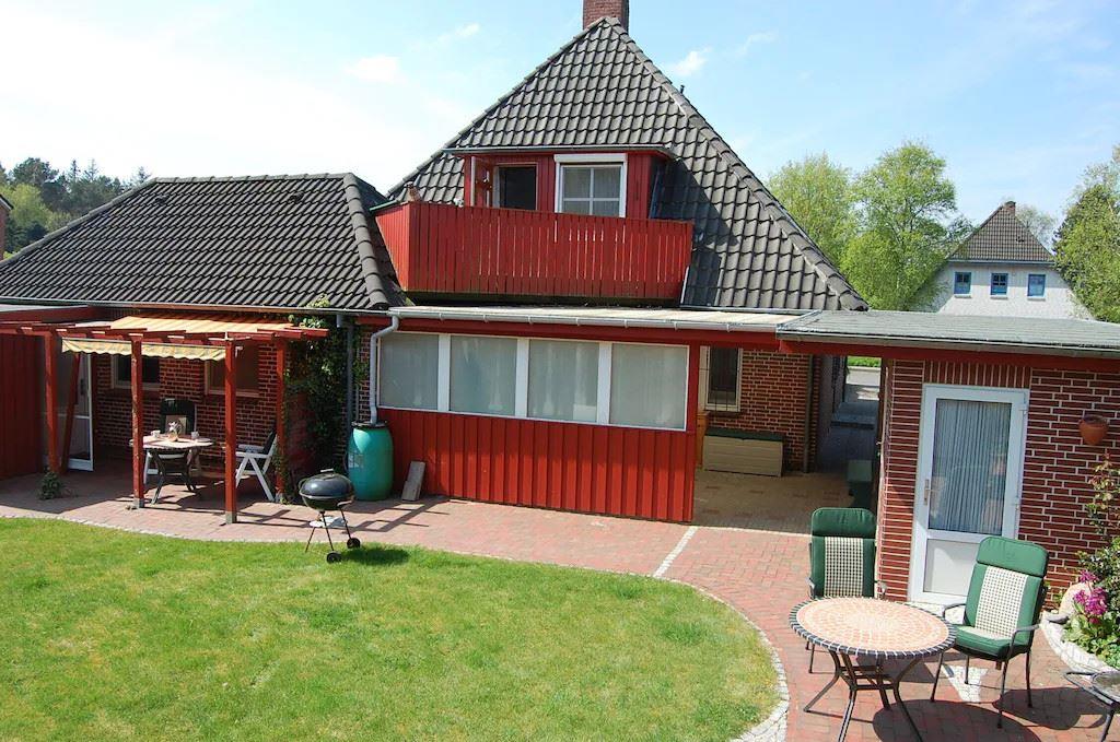 Das Haus mit drei Ferienwohnungen befindet sich in einer ruhigen Straße.