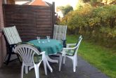 Terrasse: Nord- Westlage, Tisch, 4 Stühle, Sonnenschirm, Wäscheständer, halb überdacht