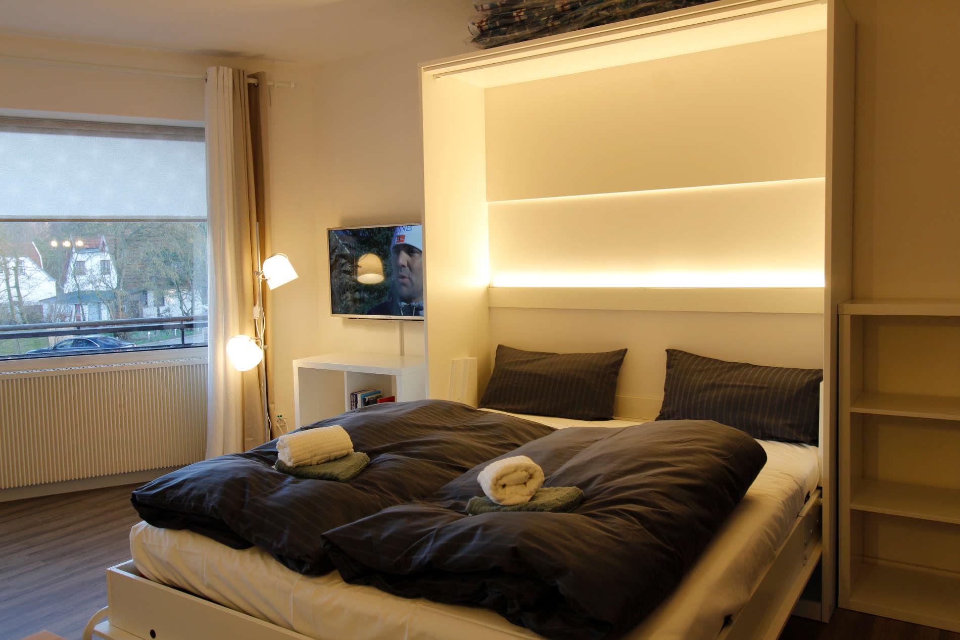Das Objekt verfügt über ca. 47 qm Wohnfläche auf 2 Zimmer verteilt. (1 Wohnzimmer, 1 Schlafzimmer, 1 Badezimmer). Wohnzimmer mit Einbauküche, Essplatz u. Doppelschrankbett, Schlafzimmer mit 2 Einzelbetten, Dusche/WC, Balkon, 1 Doppelschrankbett. Balkon, PKW-Abstellplatz.