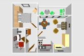 Appartement im 1. Obergeschoß. Wohn-Schlafraum mit Schrankklappbetten, Sitz-, Eßecke, Kabel-TV und Kochnische mit Geschirrspüler und Mikrowelle. Möbl. Balkon. Schlafraum mit Schrankklappbetten. Dusche/WC.