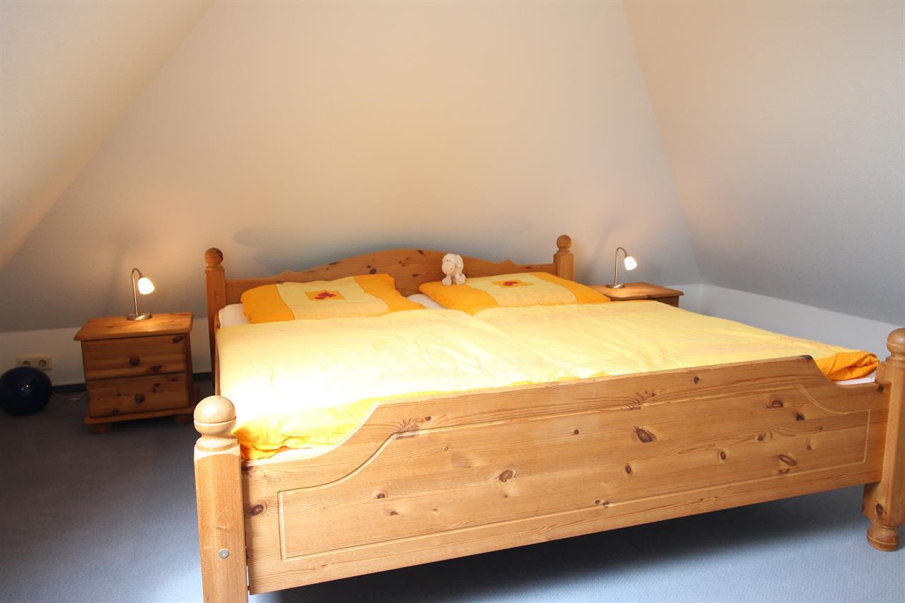Im Dachgeschoß haben Sie ein großes offenes Zimmer mit Leseecke. Von hier aus erreichen Sie einen offenen Alkoven, der besonders bei Kindern beliebt ist. Ein verdunkelbares Bullauge und 2 Einzelmatratzen erwarten Sie auf niedriger Höhe - einfach kuschelig.