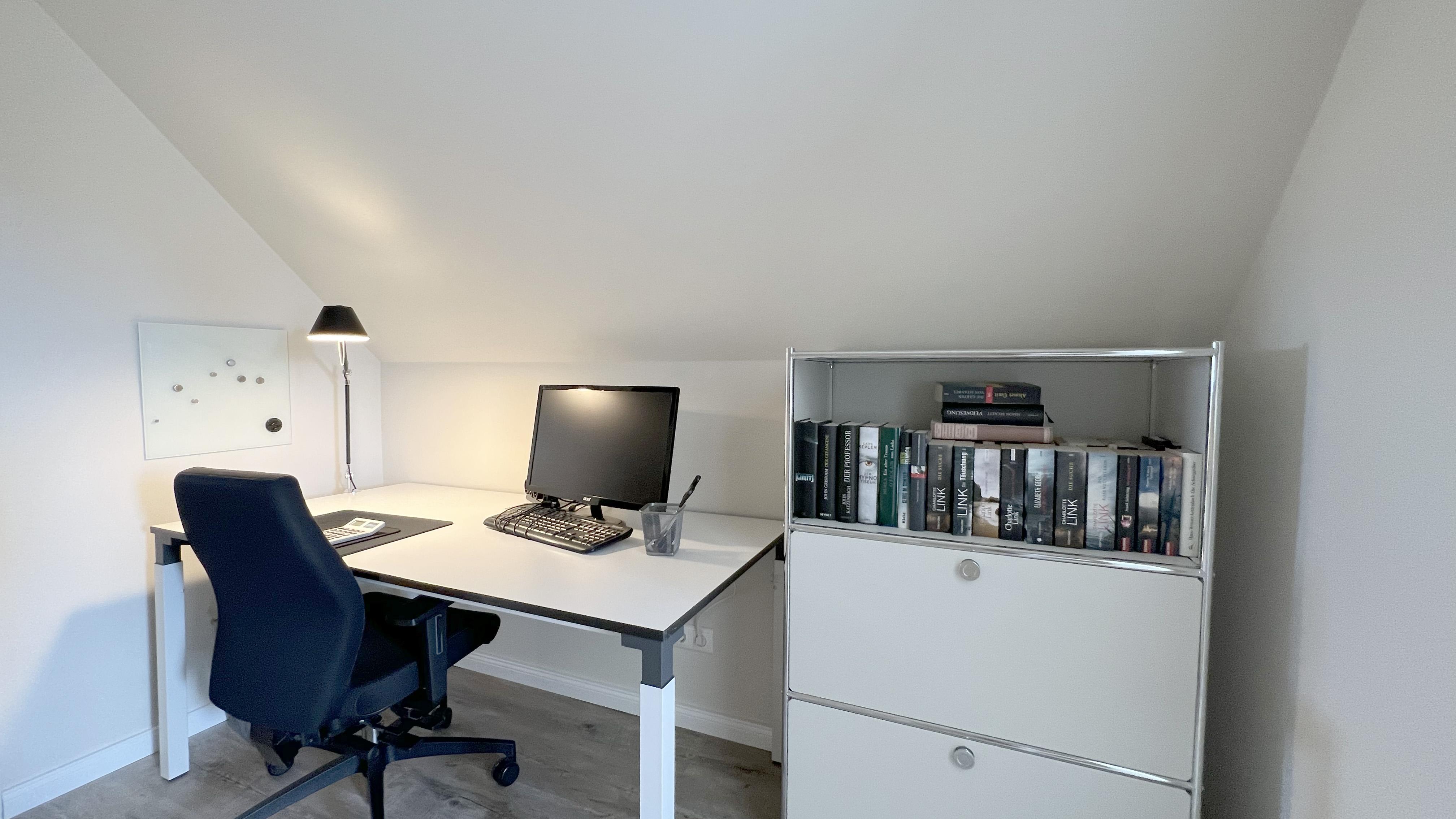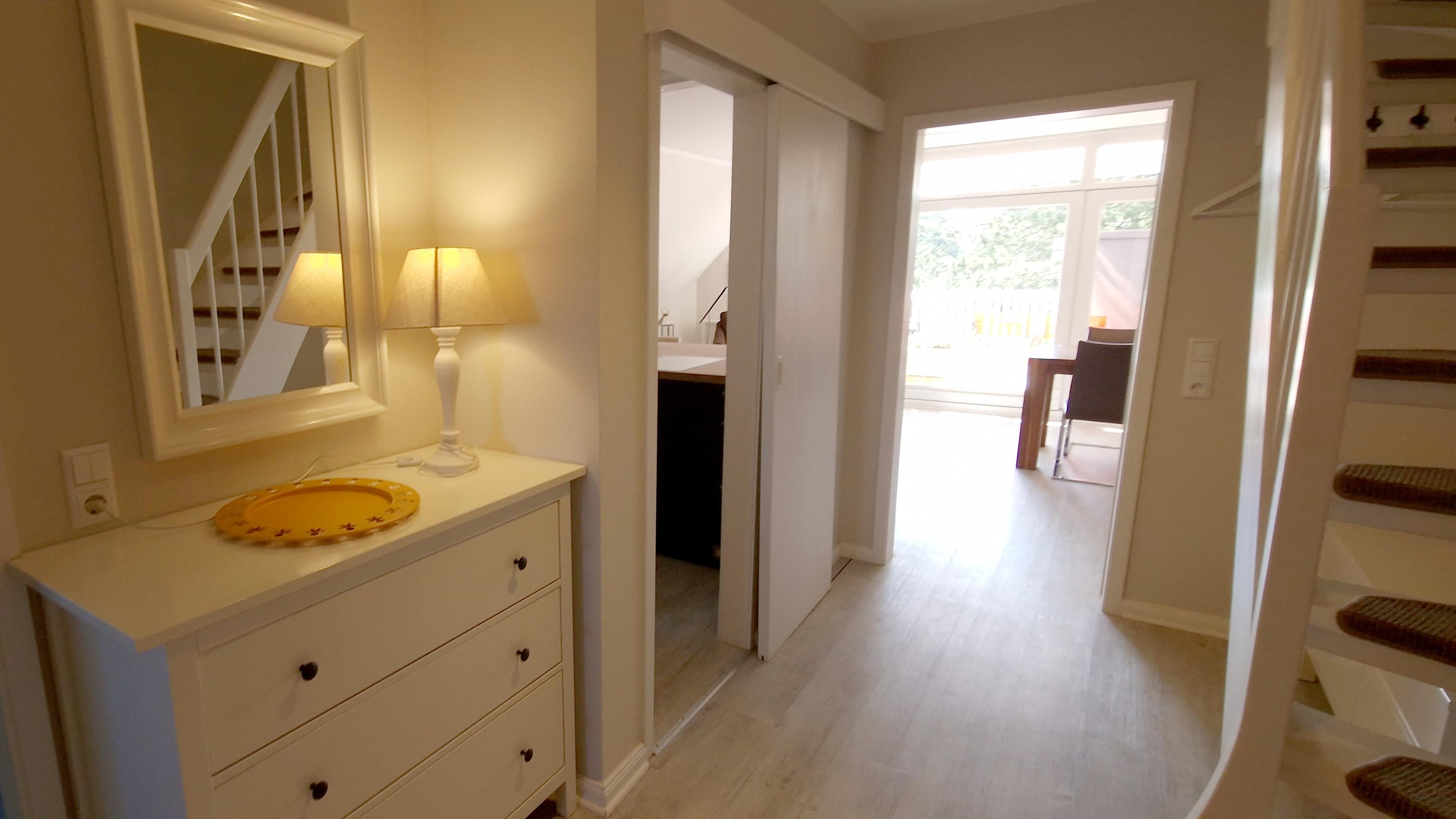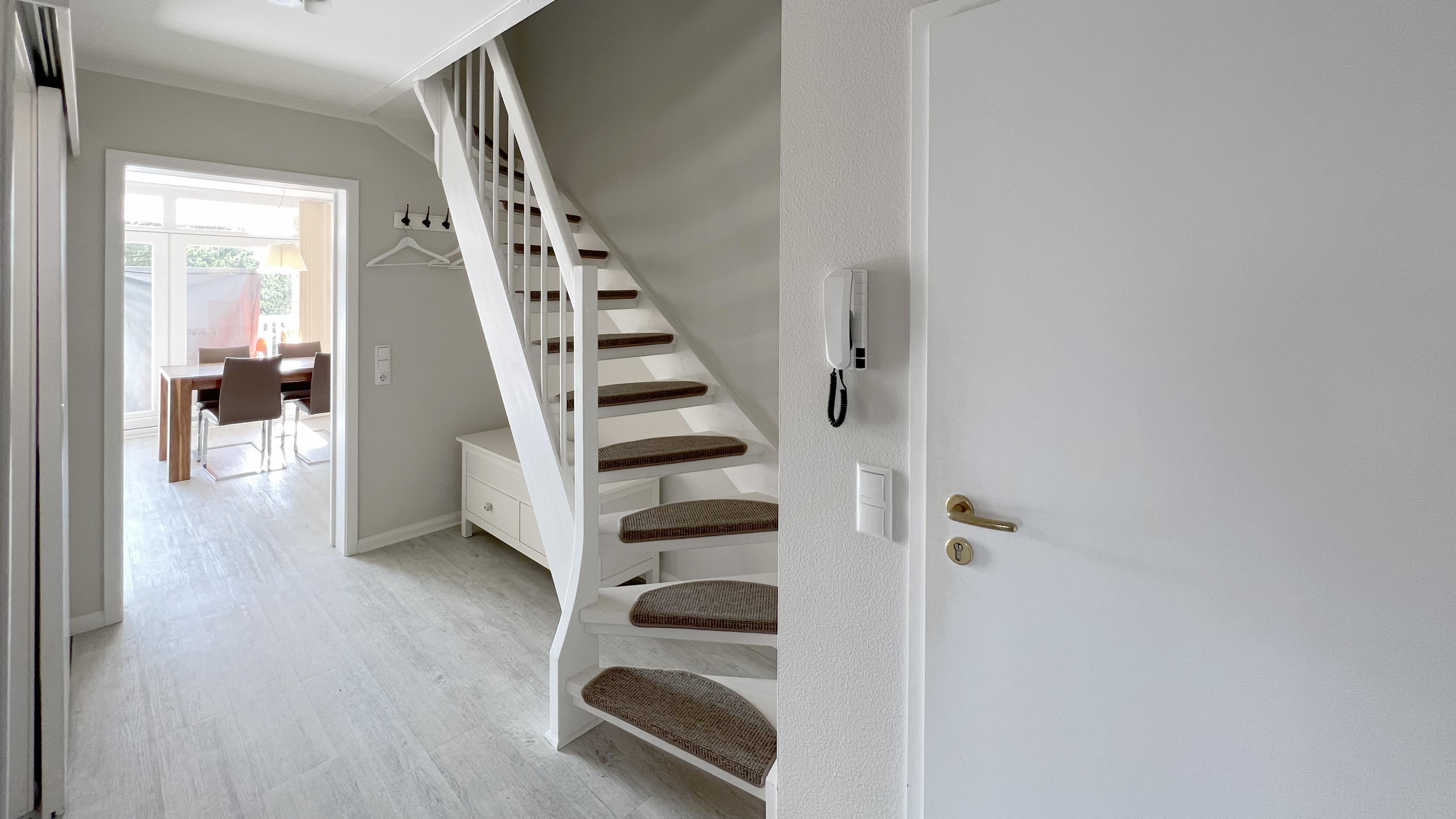 Flur2.: OG= Garderobe, Spiegel, Regal, Stuhl, Treppe nach oben. DG= Einbaukleiderschrank, Treppe nach unten