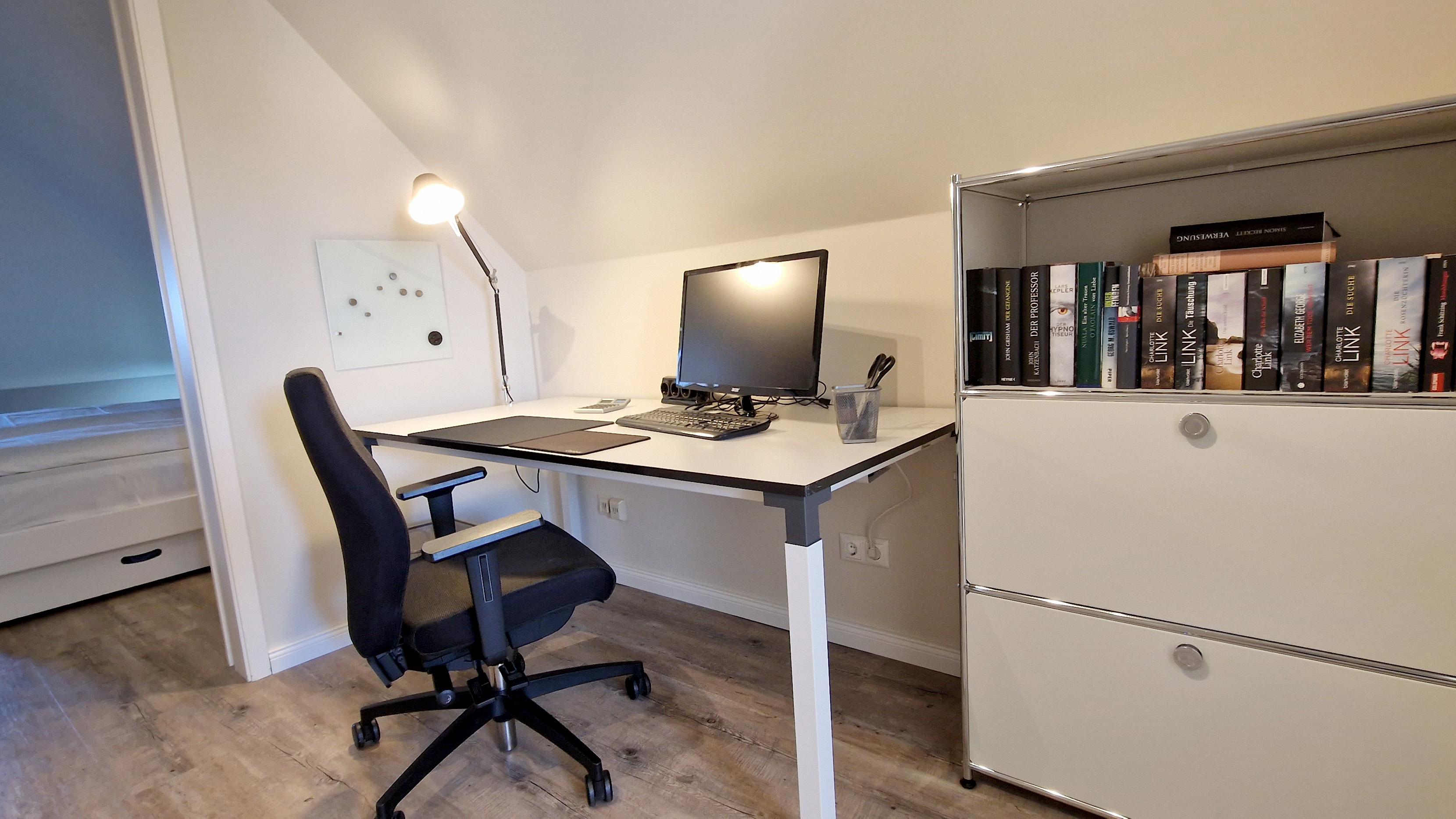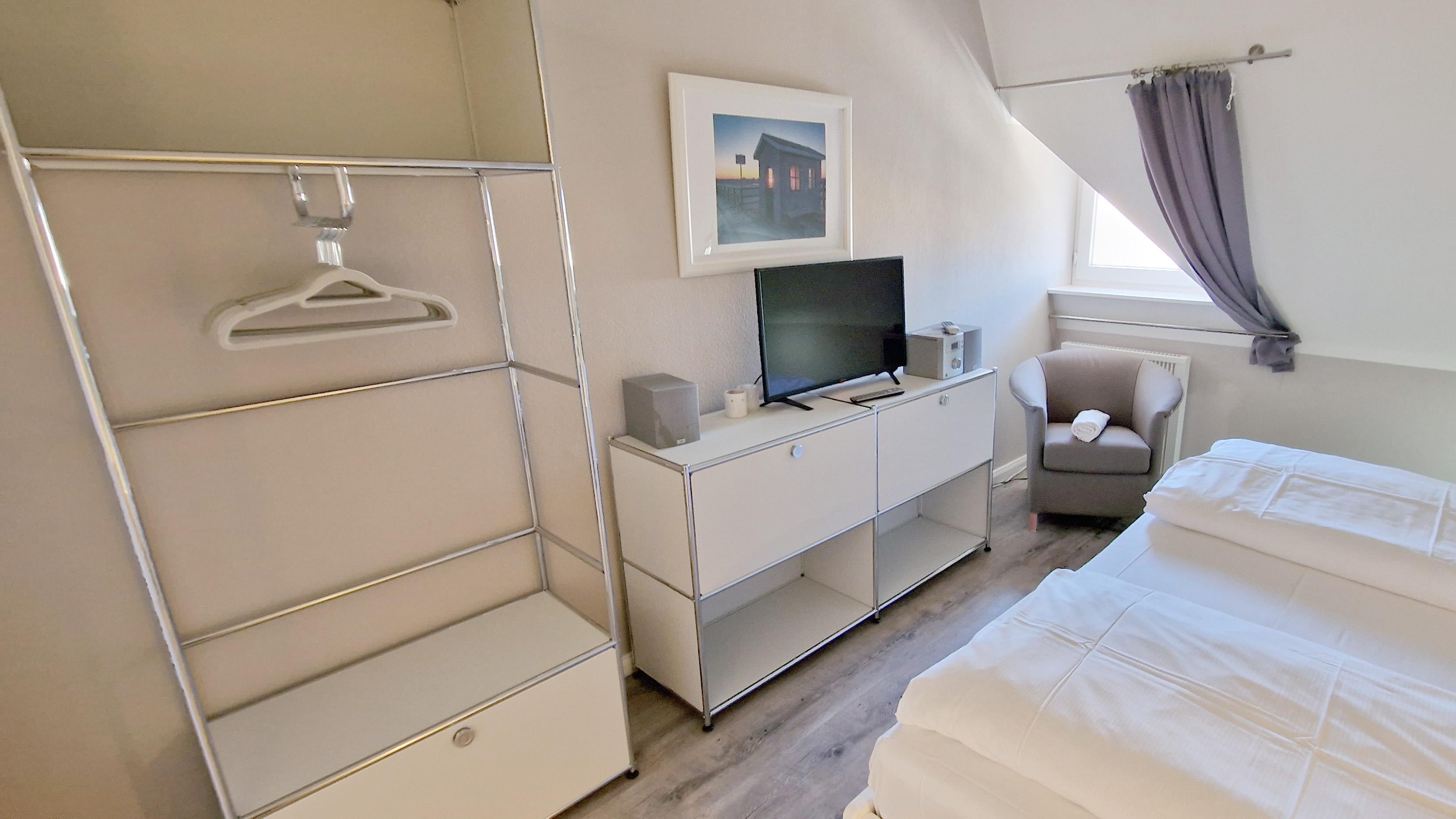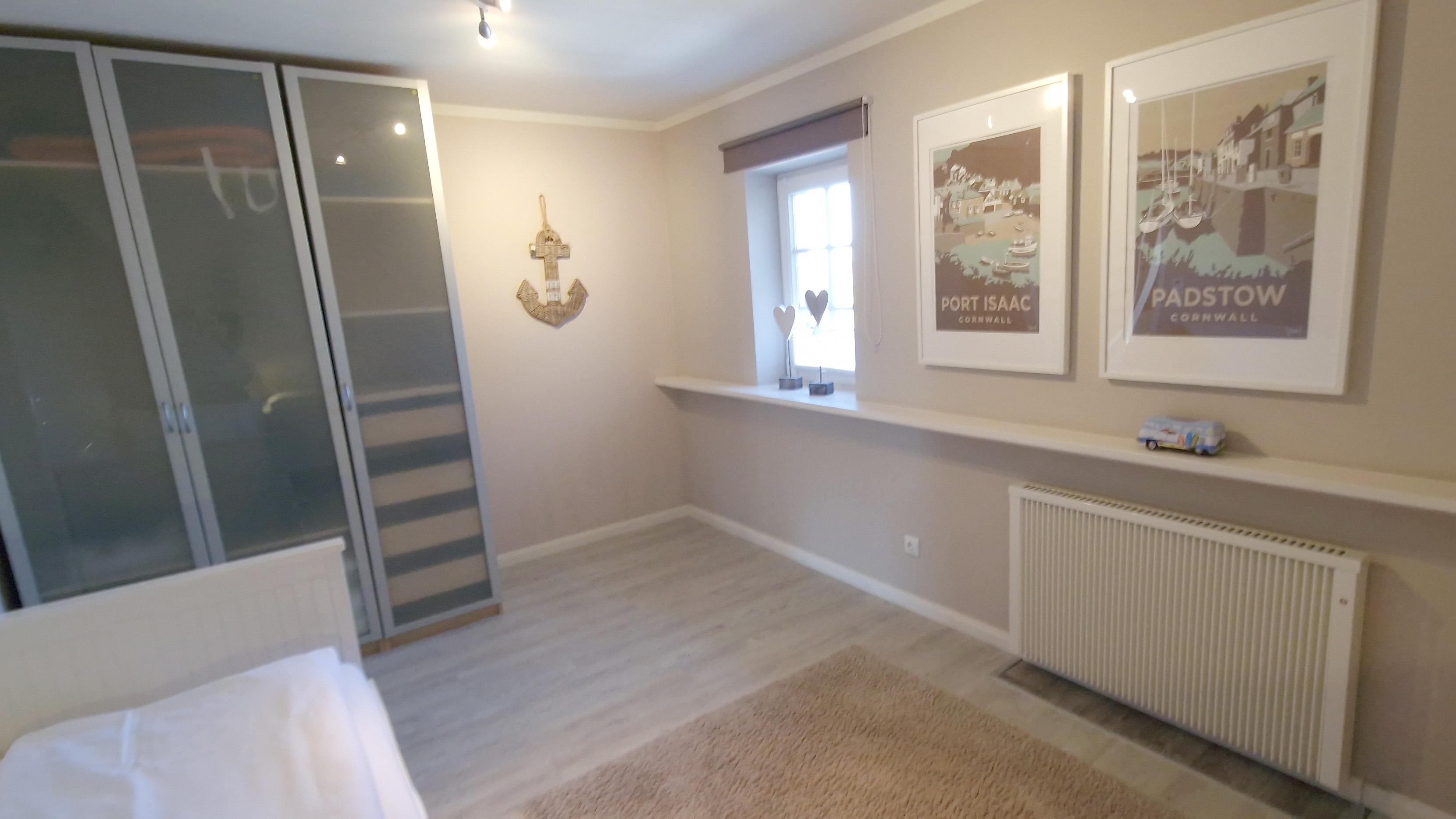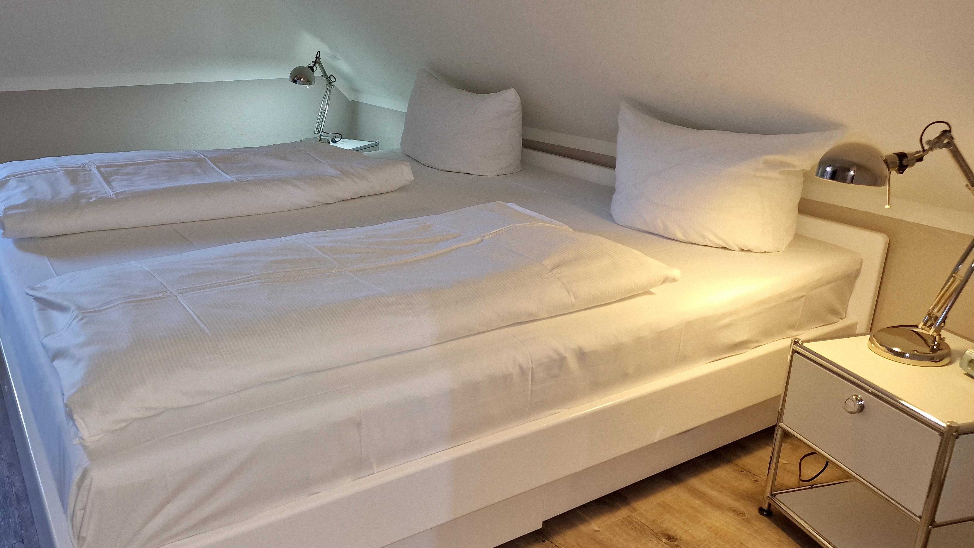 Schlafzimmer 2: Doppelbett, 2 Nachttische, Regal, Stuhl, Kabel-TV, Nachtspeicherofen