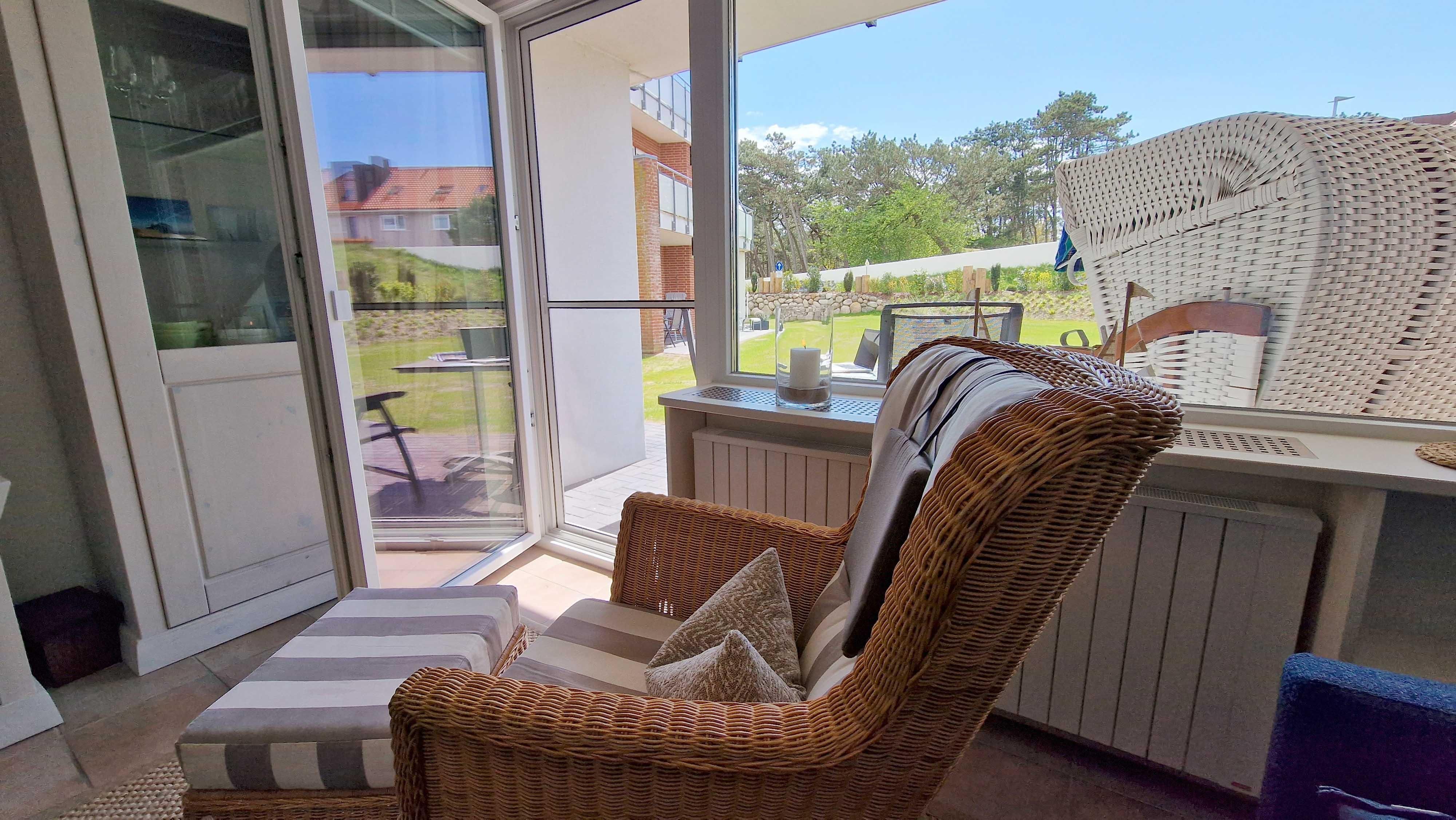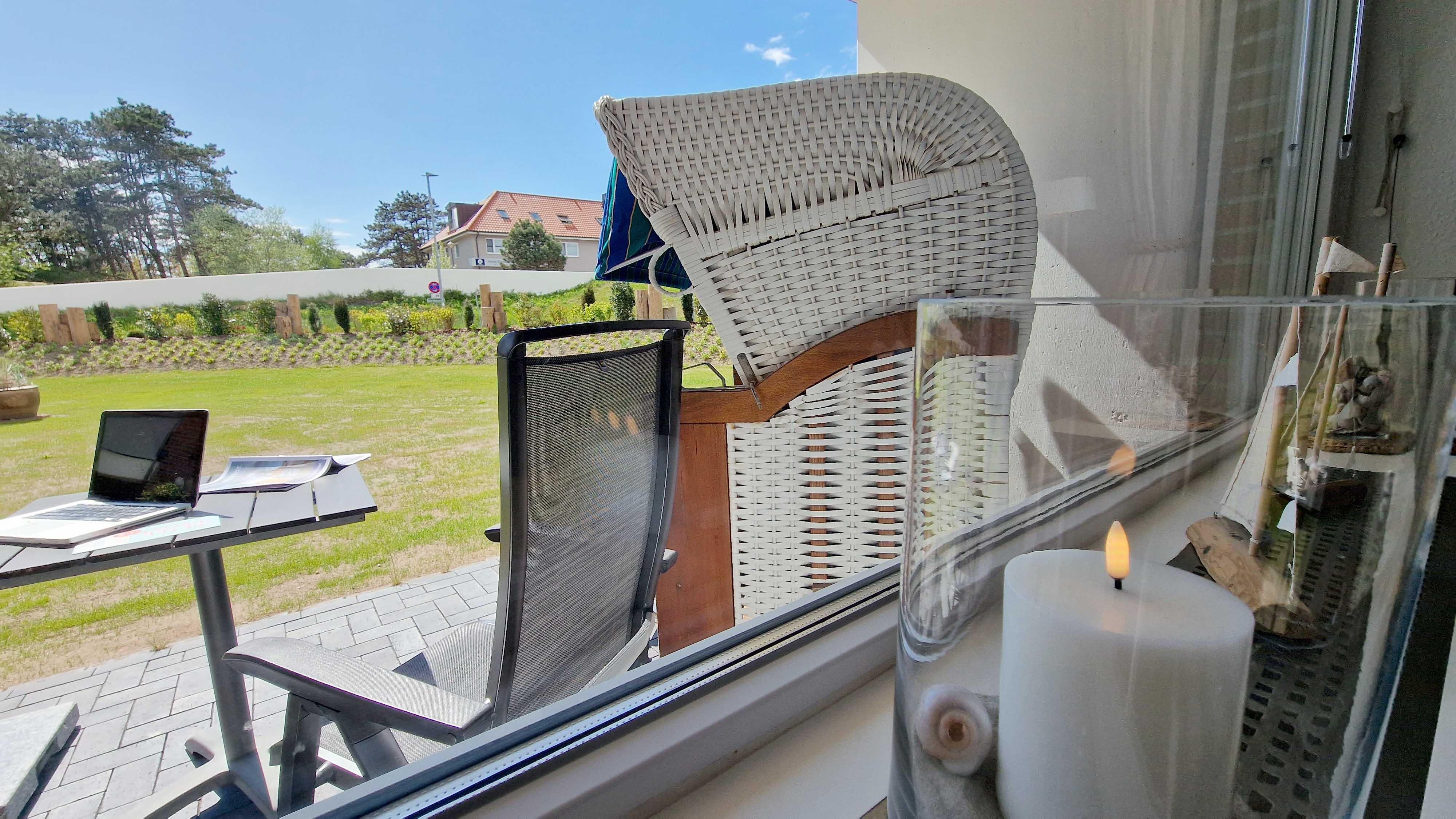 nicht erlaubt TerrasseSüd- Westlage, Tisch, Stuhl, Hocker, Strandkorb, halb überdacht