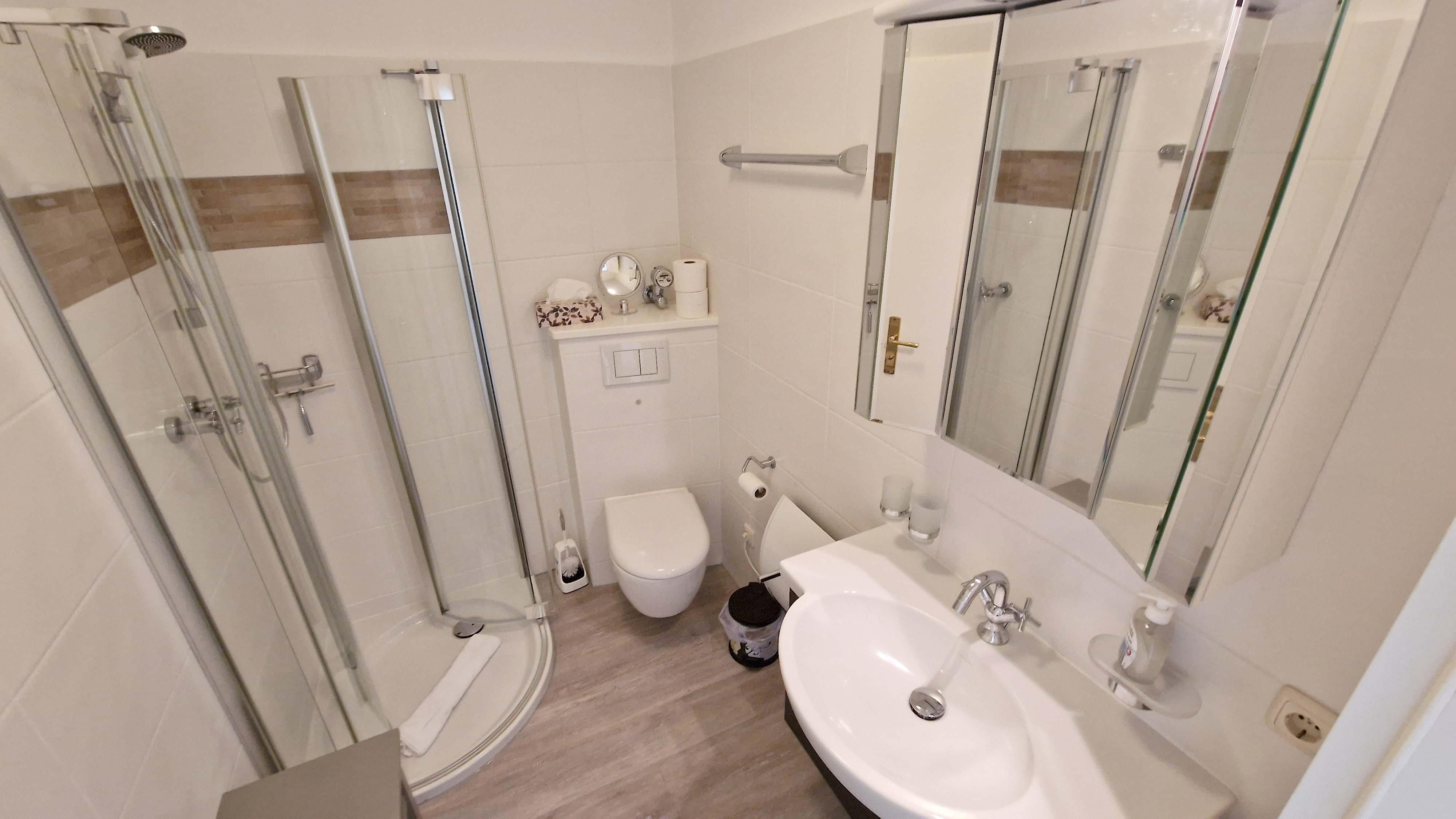 Dusche, Waschtisch, WC, Ablage, Duschkabine, Kosmetikspiegel, Spiegelschrank, Fön