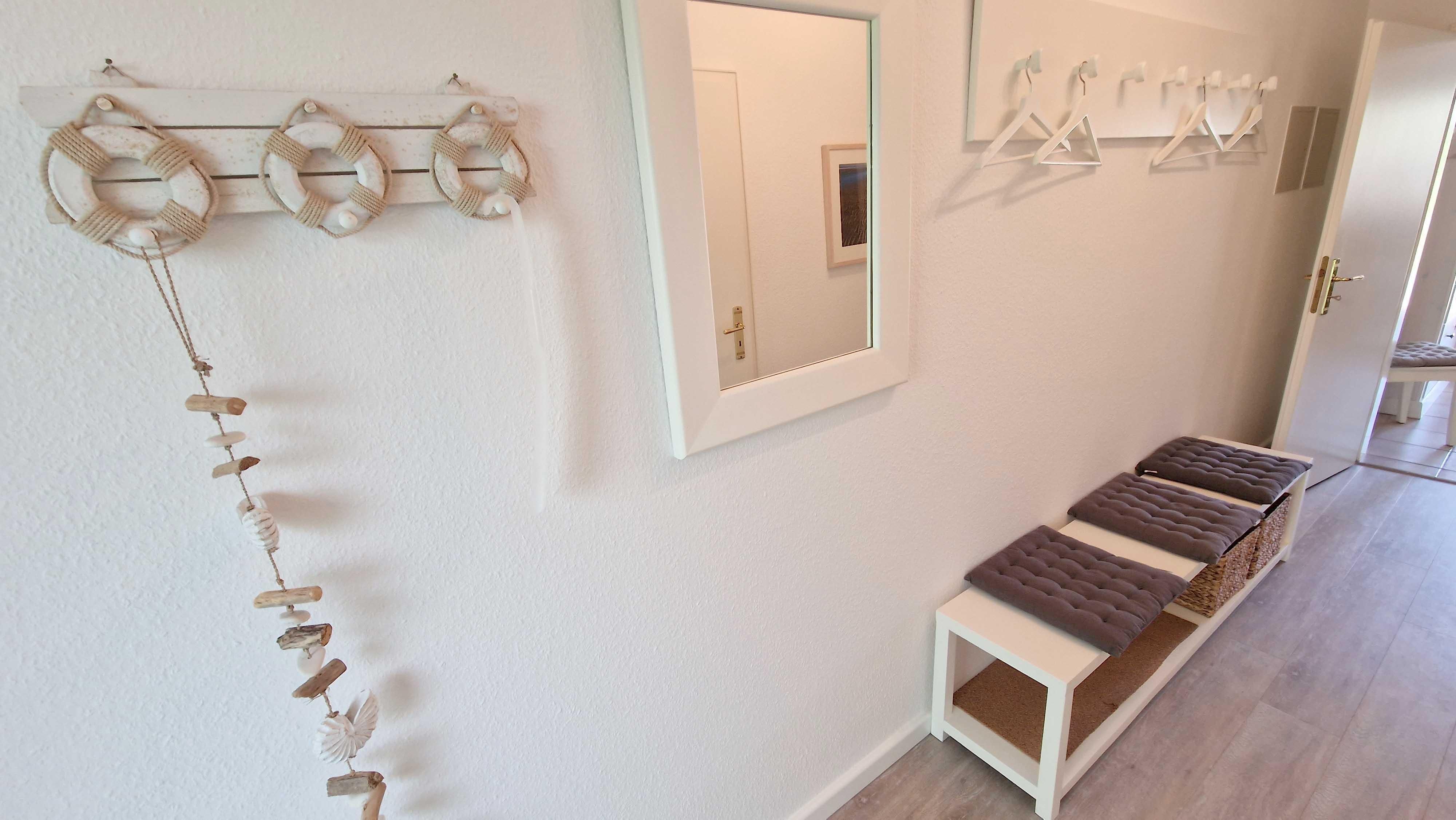 Es erwartet Sie eine komplett renovierte, komfortable 42qm große 2-Zimmer Ferienwohnung in hellen strandtypischen Naturfarben mit liebevoll ausgesuchter Ausstattung. Eine hochwertige Küchenzeile mit Geschirrspüler, ein modernes Bad und ein gemütliches Schlafzimmer lasssen keine Urlaubswünsche offen. Auf der überdachten Terrasse befindet sich u.a. ein toller Strandkorb, in dem Sie mit Blick auf den Deich die Seele baumeln lassen können.