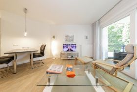 Gemütliche 2-Raum-Wohnung auf der 1. Etage, zentrumsnah in Duhnen. Vollständige Küchenzeile mit Mikrow, Backofen, Geschirrspüler etc. Wohnzimmer mit Schlafcouch und Westbalkon (mit Balkonmöbeln & Sonnenschirm, saisonabhängig) , 2x SAT-TV, Stereoanlage, kostenfreies W-Lan, separates Schlafzimmer mit Außenjalousien, allergikerfreundlich, ebenerdige Dusche/WC, reservierter Pkw-Stellplatz in ebenerdiger Doppelgarage #5, eigener Kellerraum mit Lademöglichkeit für eBikes, keine Haustiere und natürlich Nichtraucher.