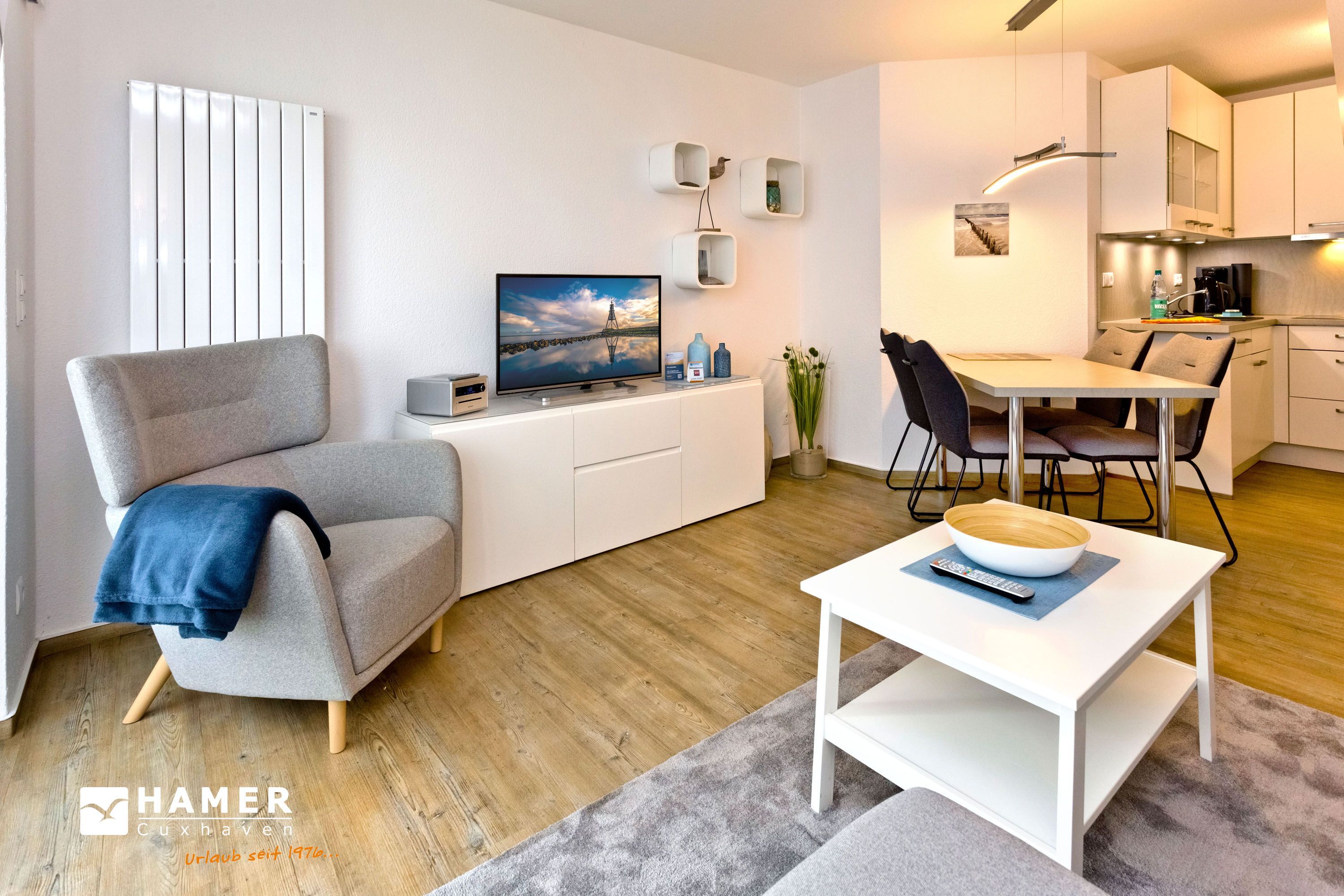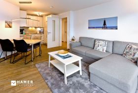Stilvolle, moderne 2-Raum-Wohnung im Admiralsgarten auf der 1. Etage. Mit vollständiger Küchenzeile mit Mikrow., Back., Geschirrspüler etc. garantiert höchsten Komfort. Wohnzimmer mit Balkon (süd/ost), 2x SAT-TV, Sonoro-HiFi-Anlage, kostenloses W-Lan, separates Schlafzimmer mit Außenjalousien, allergikerfreundlich, ebenerdige Dusche/WC, reservierter Pkw-Stellplatz in der Tiefgarage #2, keine Haustiere gestattet, Nichtraucher.