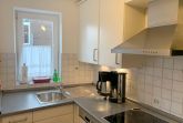 Küche: Einbauküche, 4 Plattenherd mit Ceranfeld und Backofen, Dunstabzugshaube, Kühlschrank, Spülmaschine, Mikrowelle, Staubsauger, Kaffeemaschine, Wasserkocher, Toaster, Geschirr, Kochtöpfe
