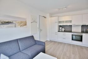Schöne Ferienwohnung für 2 Pers. auf ca. 32m² im 1.OG mit Personenaufzug, Balkon (süd), 1 Schlafzimmer mit Doppelbett und TV, Wohnzimmer mit hochwertiger Küchenzeile und Vollausstattung (Geschirrspüler, Mikrowelle, Backofen, Gefrierfach), TV, kostenfreies W-LAN, ebenerdige Dusche, WC, Föhn, alle Räume mit Rollladen, Nichtraucherwohnung, Pkw-Stellplatz #6, keine Haustiere gestattet.