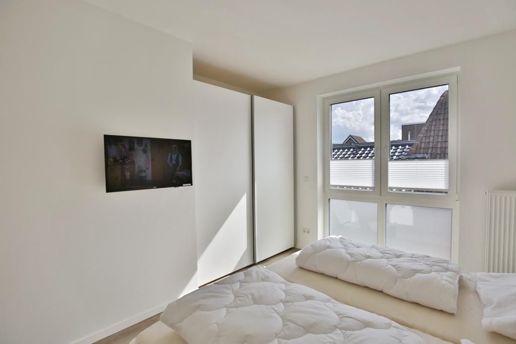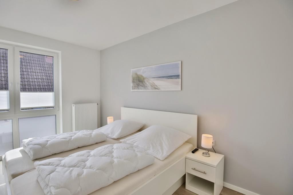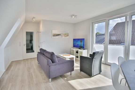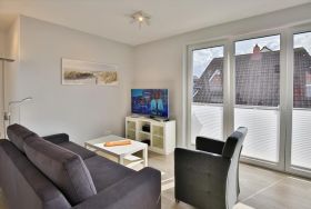 Schöne, moderne Ferienwohnung auf ca. 72m² bis 4 Pers. im 2.OG mit Personenaufzug. Balkon (süd), 2 Schlafzimmer mit TV (1x Doppelbett und 1x 2 Einzelbetten), Wohnzimmer mit vollständiger Küchenzeile (Geschirrspüler, Gefrierfach, Backofen, Mikrowelle), TV, Blue-Ray-DVD, kostenfreies W-LAN, ebenerdige Dusche/WC mit Föhn, Rollladen, reservierter Pkw-Stellplatz #8 am Haus, Nichtraucherwohnung, keine Haustiere gestattet.