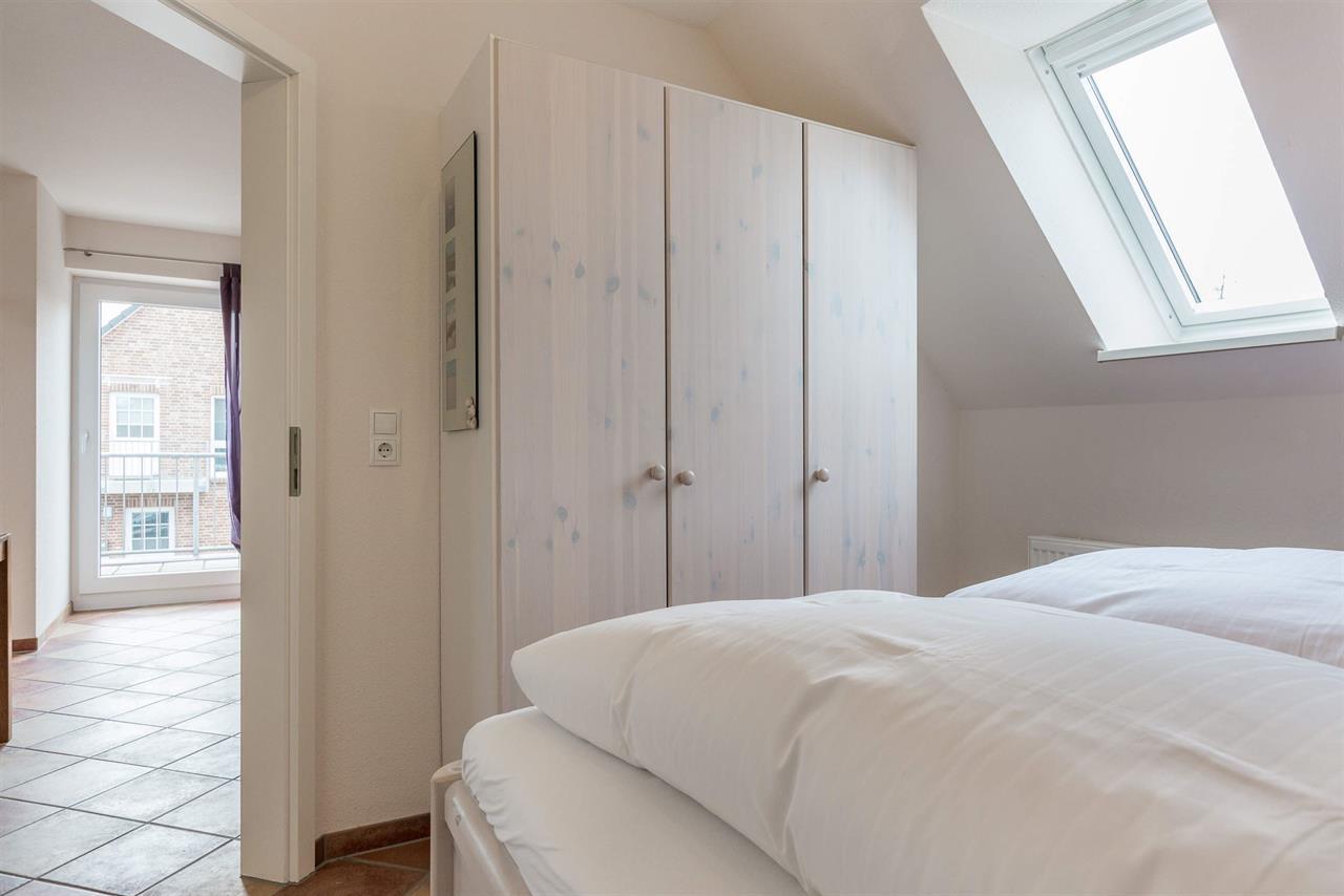 • Ein Schlafzimmer mit Doppelbett (180x200cm) und Kleiderschrank.