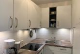 Küche: Einbauküche mit Geschirrspüler, 4-Plattenherd, Dunstabzugshaube, Kühlschrank mit Eisfach, Kombigerät Mikrowelle / Backofen, Kaffeemaschine, Wasserkocher, Toaster, Geschirr, Kochtöpfe