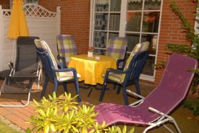 Die gemütlich eingerichtete, helle 2-Zimmer-Ferienwohnung Wattläufer Nr. 02 empfängt Sie im EG mit 3 Personen. Die Küche ist vom Wohnbereich abgetrennt und mit einem 4-Plattenherd ausgerüstet. Neben der Schlafcouch im Wohnzimmer gibt es ein separates Schlafzimmer mit einem weiteren Doppelbett. Auf der netten, teilüberdachten West-Terrasse am Fuße des Reetdaches lässt es sich gut entspannen.