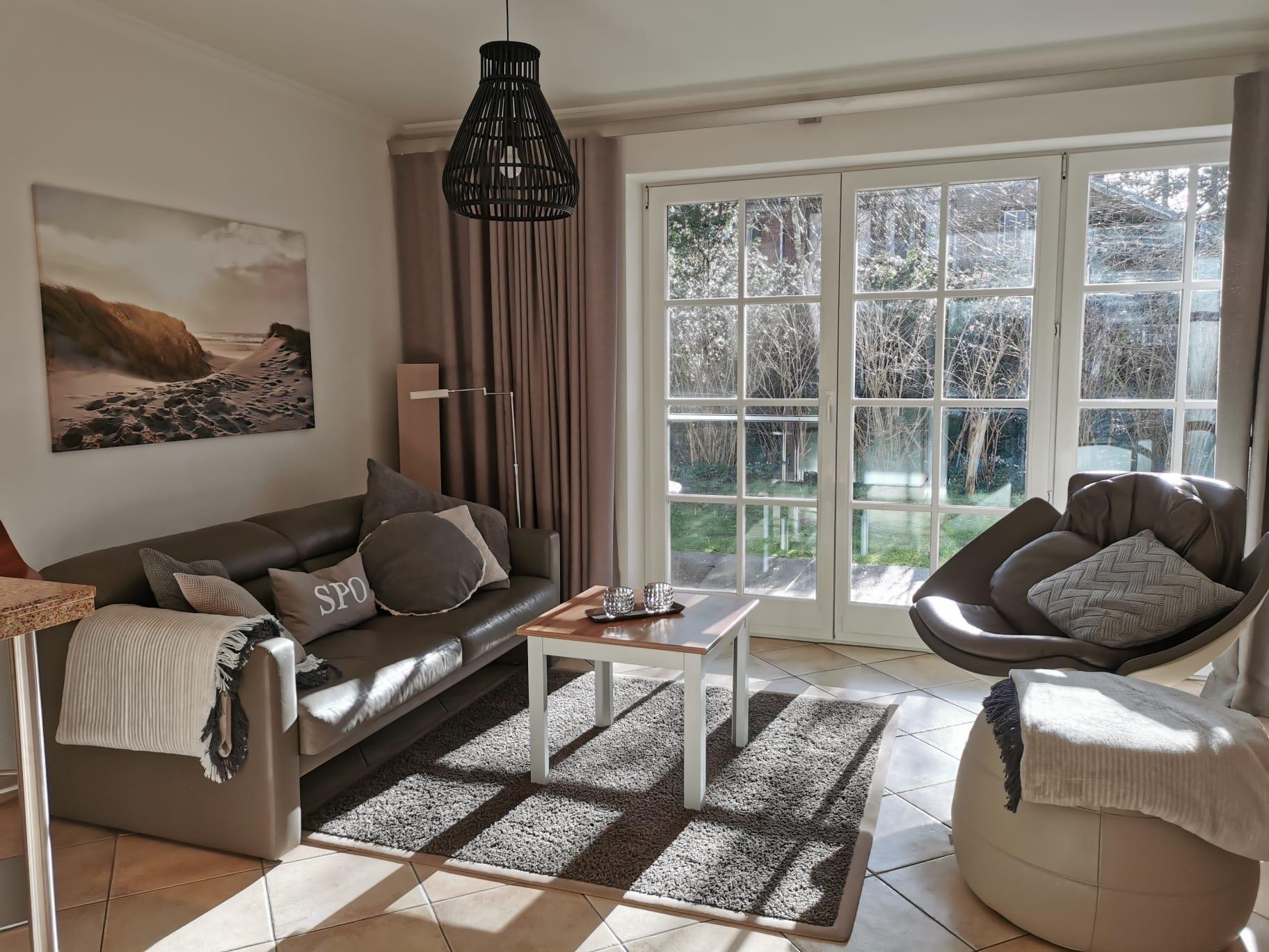 3-Zimmer-Appartement im Erdgeschoß und Soutterrain, aufwendig und komfortabel ausgestattet. Wohnraum mit Kabel-TV, Küchenzeile, Sitzecke, Spülmaschine, Eßecke, möbl. Südost-Terrasse. Schlafraum mit Einzelbett und Duschbad/WC, Flur. Schlafraum im Soutterrain mit Boxspringbett ( 1,80 x 2,00 ) und Duschbad/WC, Föhn, Kabel-TV, W-LAN Glasfaseranschluß, Safe. Insektenschutz.