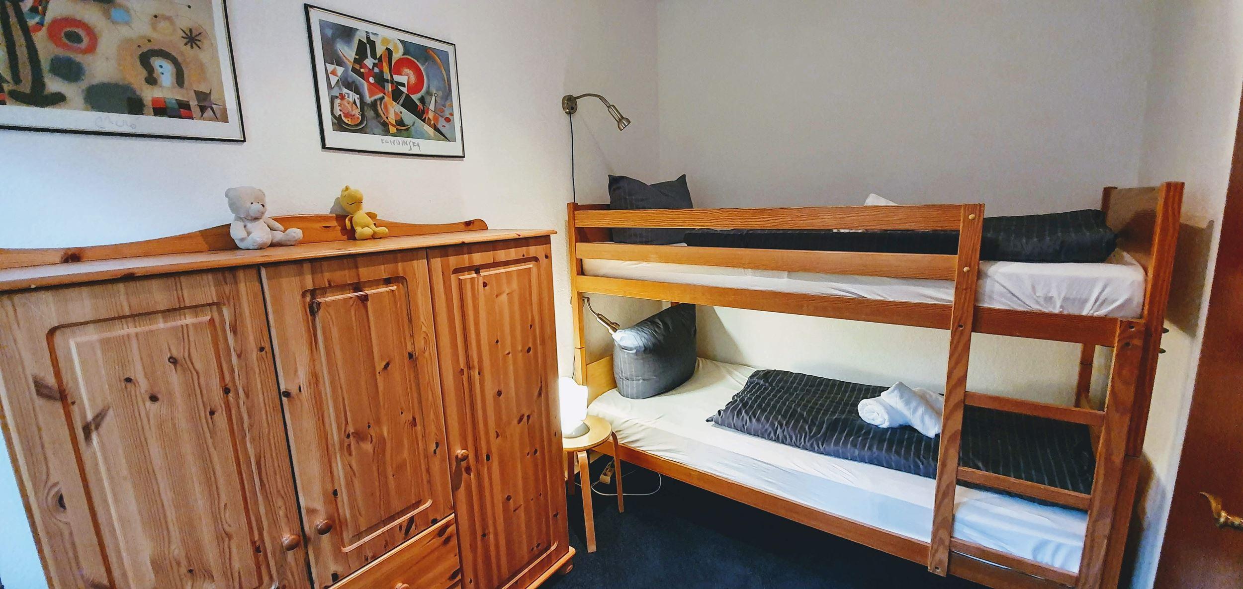 3. Schlafzimmer mit Etagenbetten (je 90x180cm) und Kleiderschrank.
