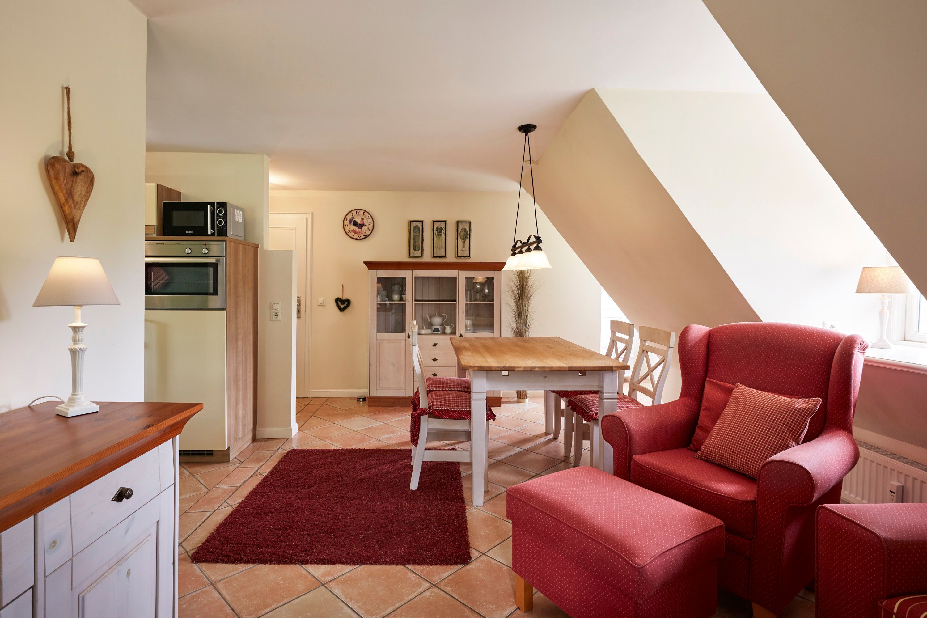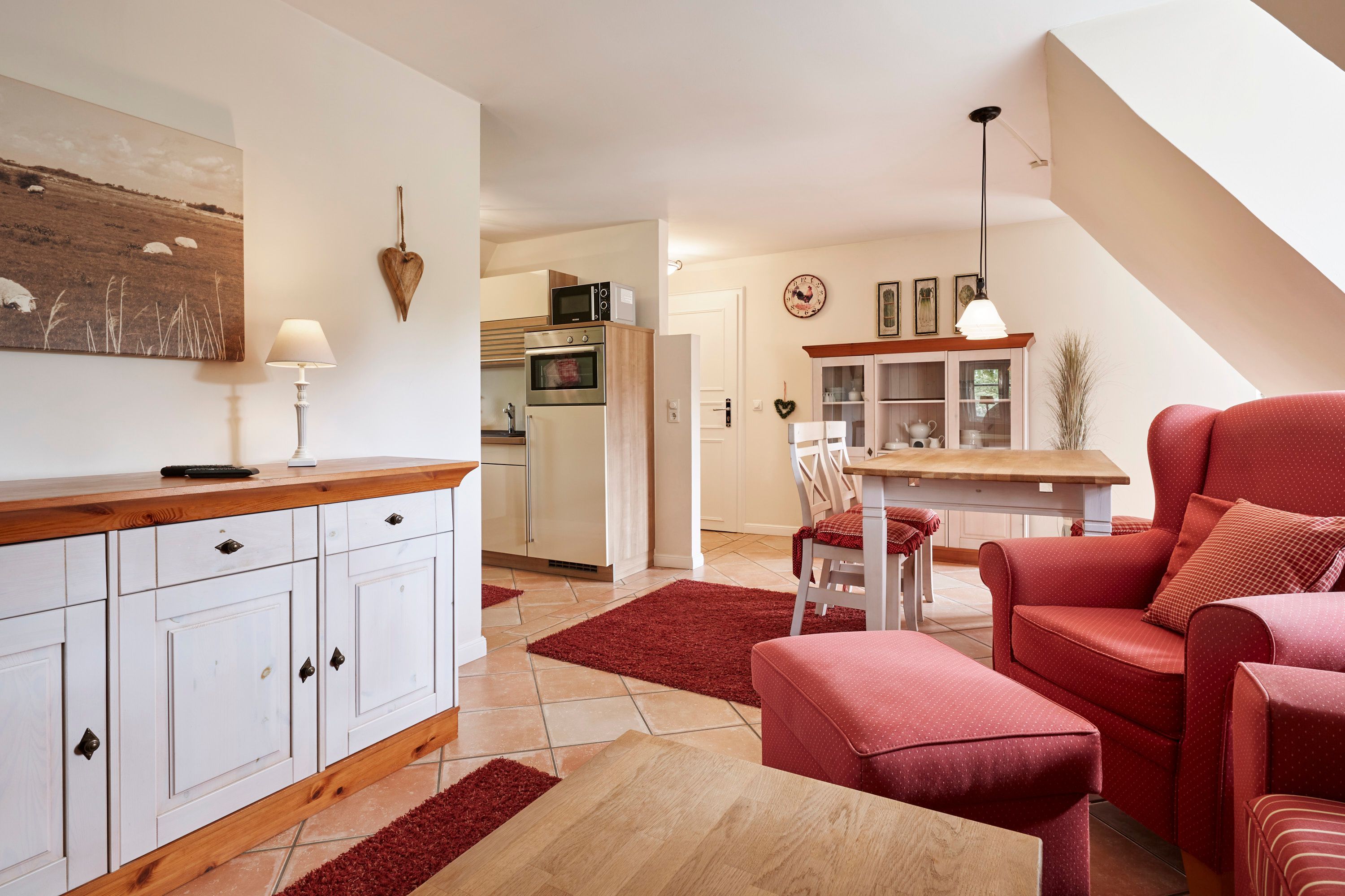 Das langgestreckte Witthüs in Nieblum, direkt gegenüber der de Meere, dem Dorfteich in Nieblum. Das schöne Gebäude mit dem Doppelgiebel steht auf einem ca.2000 qm großen Grundstück, welches zur Straße hin mit einem Friesenwall und einem Holztor begrenzt wird. Das Entennest im Obergeschoss bietet Ihnen auf 40 qm alles für einen gemütlichen Urlaub im schönen Dorf Nieblum. Der Wohn-Essbereich mit angeschlossener Küche, ein Duschbad und ein Doppelbettschlafzimmer steht Ihnen zur Verfügung. Im Garten haben Sie einen Sitzplatz mit Strandkorb, den Sie nutzen können. Aus dem Fenster haben Sie einen schönen Blick auf den Dorfteich. Mit nur wenigen Schritten sind Sie schon in Nieblum und bummeln entlang der schönen Bauerngärten und alten Kapitänshäuser.