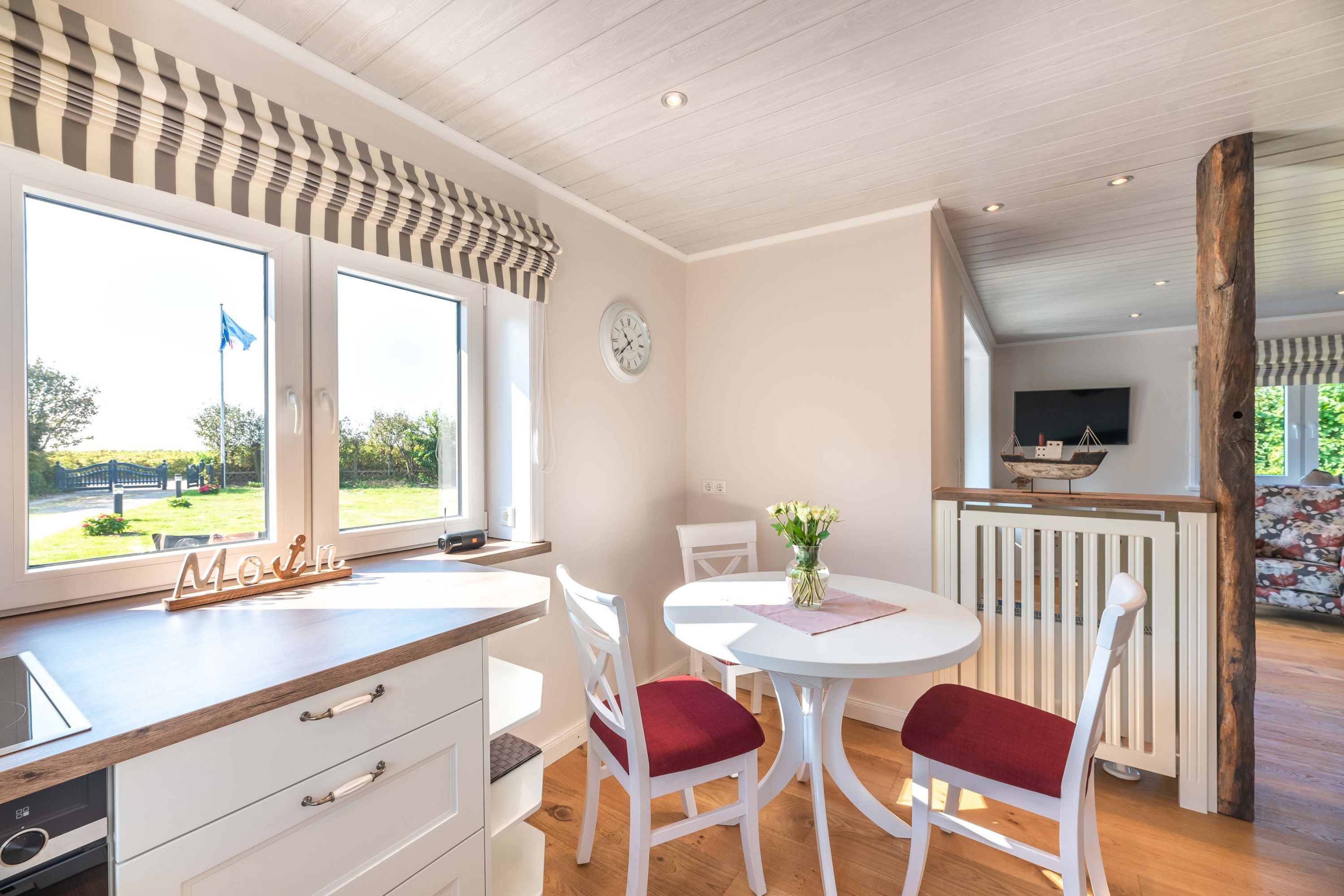 Ihr Haus mit Meerblick für die schönste Zeit des Jahres. Dieses mit viele Liebe renovierte und eingerichtete Einzelhaus in Nieblum, steht nahe beim Goting Kliff. Egal zu welcher Jahreszeit Sie unser Haus „Kliff 21“ bewohnen, es wird unvergesslich sein. Im Sommer nutzen Sie den großen Garten mit Terrasse und im Winter gibts ein gemütliches Kaminfeuer. Den wunderbaren Meerblick genießen Sie jeder Zeit. Der erste Blick am Morgen geht Richtung Meer. Ist gerade Ebbe oder Flut? Wattwandern oder schwimmen gehen? Von Goting aus ist es mit dem Rad ganz einfach die Insel zu erkunden. Auch ein Strandspaziergang nach Nieblum sollte im Urlaub dazu gehören. Wann buchen Sie unser Haus am Kliff 21?