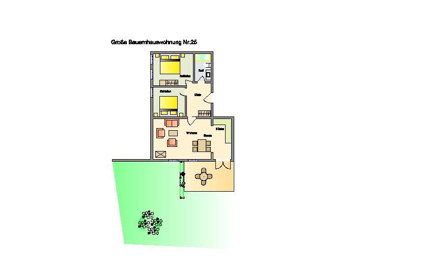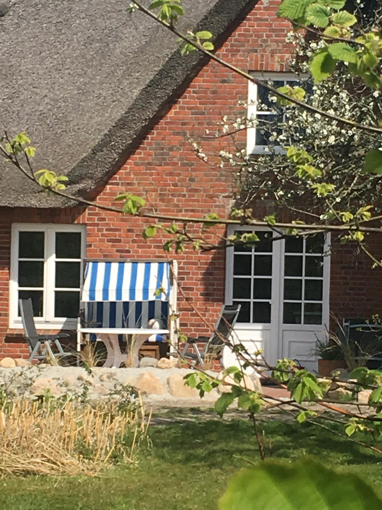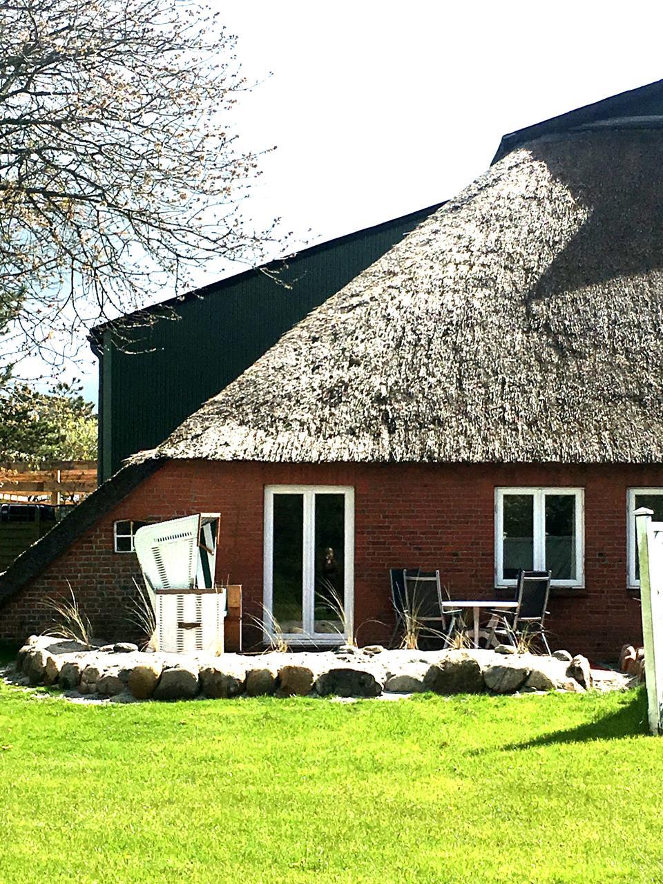 Modernisierte und renovierte Ferienwohnung unter Reet, in den Schlafräumen sind noch die alten Holzfußböden erhalten, der restliche Bereich wurde gefliest, sichtbare Deckenbalken und Füllungstüren geben der Wohnung den besonderen Charme. Vom Wohn-Essraum mit integrierter Wohnküche haben Sie direkten Zugang zur Südterrasse mit Strandkorb und Gartenmöbeln und natürlich zur großen Spiel-und Liegewiese. 2 Schlafzimmer mit Doppelbett (2 Matratzen 90x200cm), Wannenbad mit WC. Diele mit Garderobe. Parkplatz.