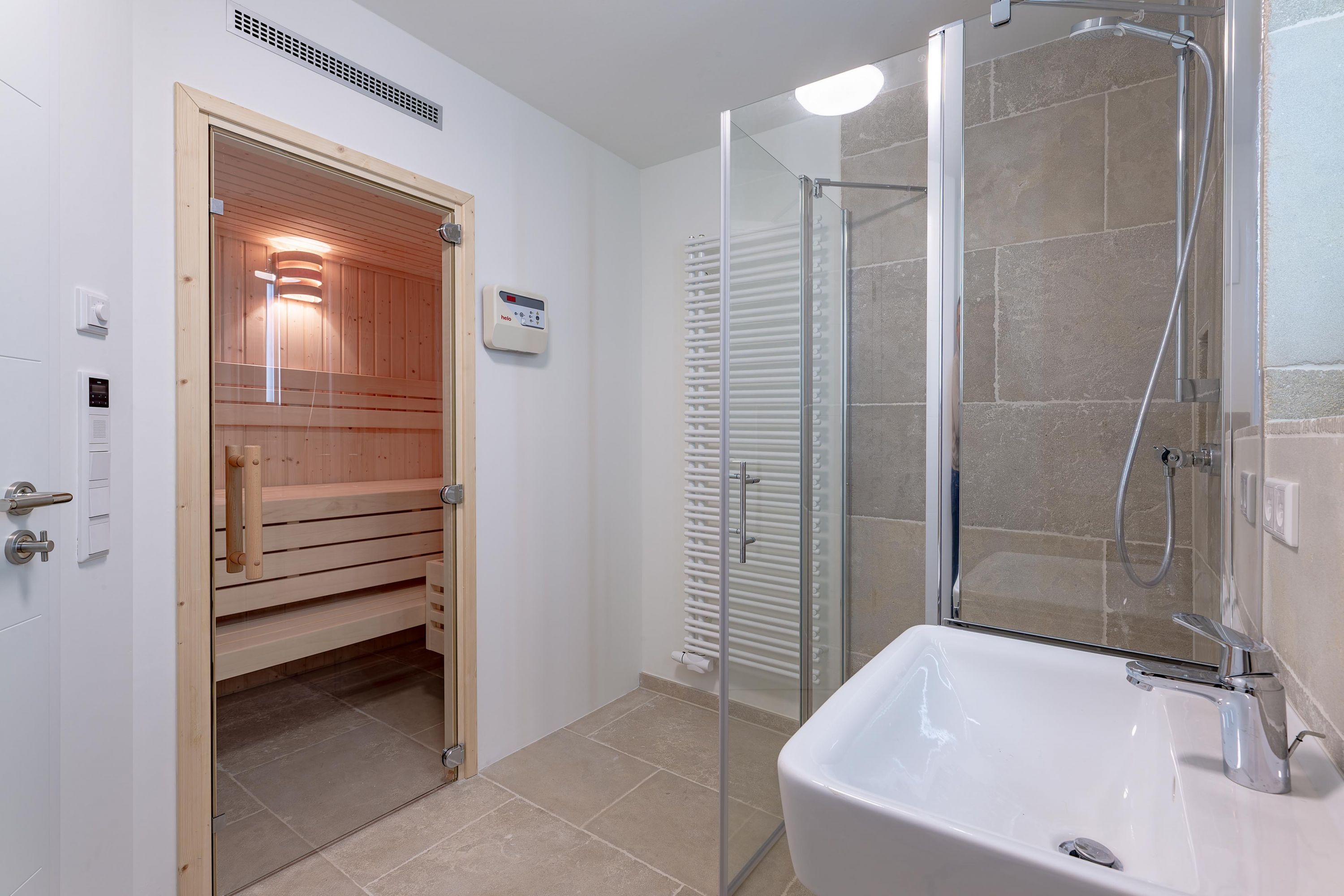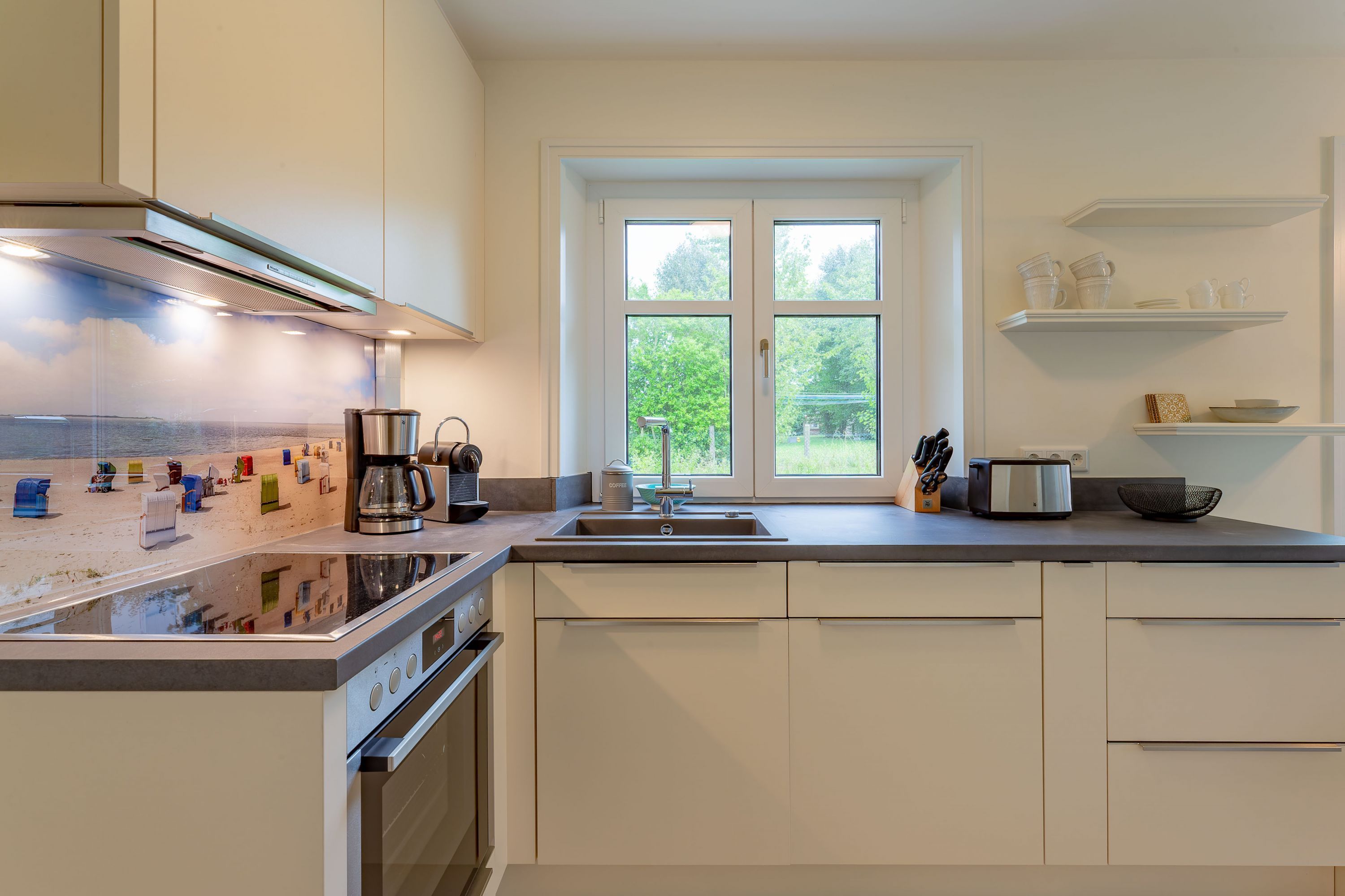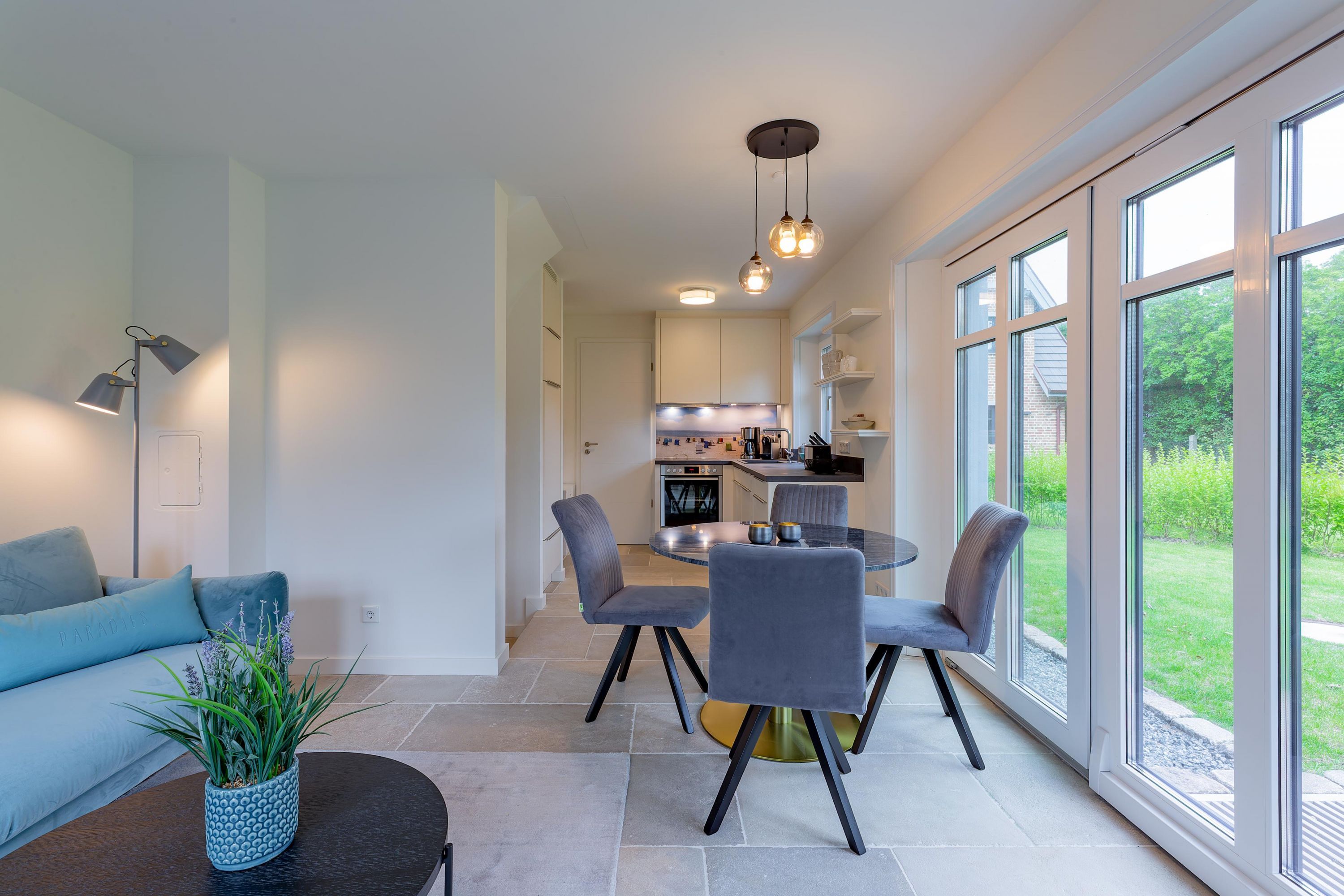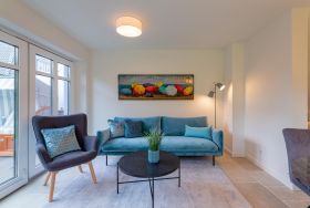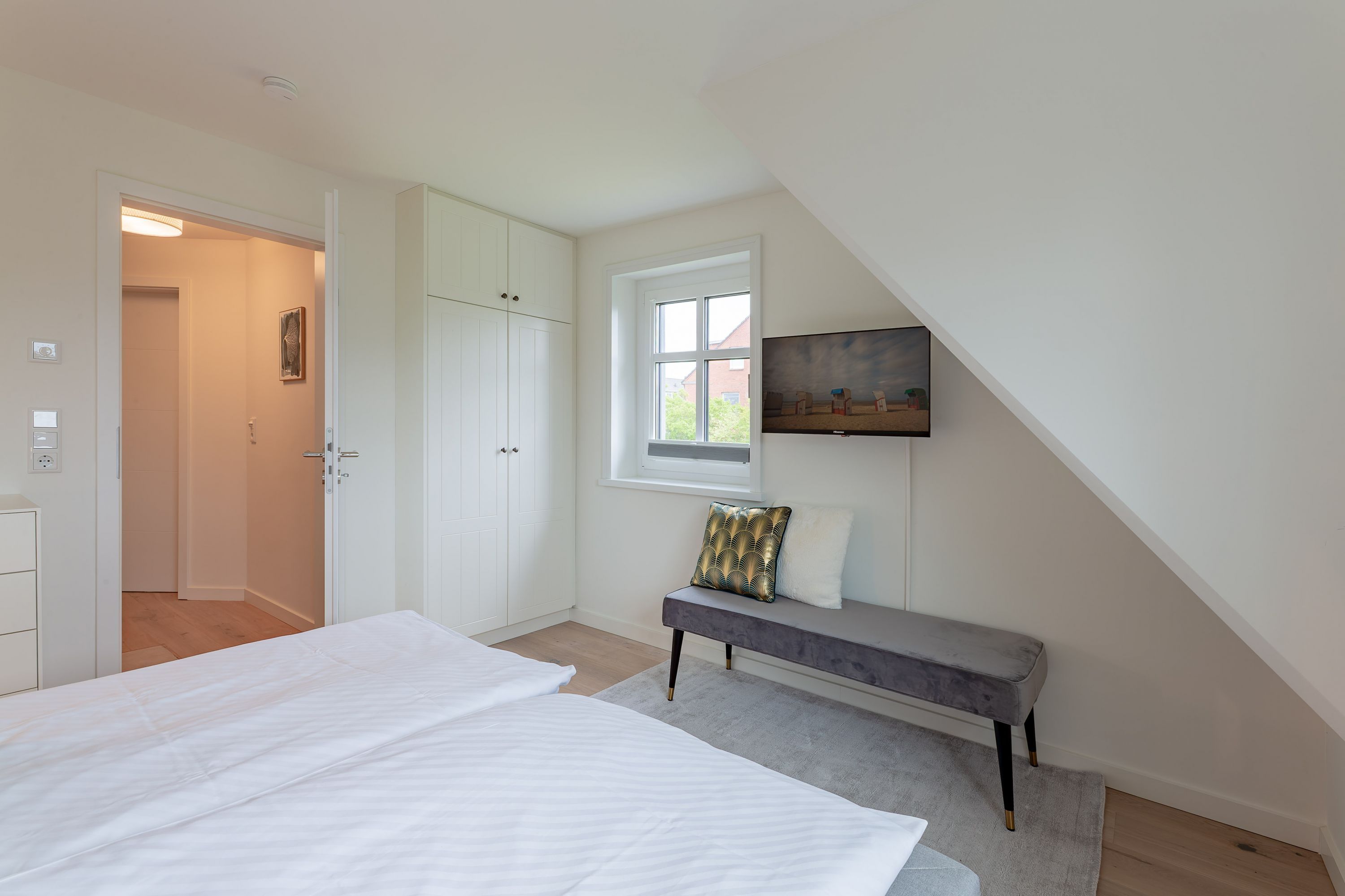 Modernes Wohnen im Stine-Andresen-Weg in Wyk auf Föhr. Der Stine-Andresen-Weg liegt westlich nur wenige Gehminuten vom Zentrum entfernt. Es handelt sich um eine ruhige Nebenstraße, in der sowohl Insulaner als auch Feriengäste leben. In fußläufiger Entfernung gelangen Sie zur Strandpromenade die zum Bummeln einlädt und sich fast 3 km lang erstreckt. Auch der Wyker Stadtwald und der Ortskern in Wyk liegen fußnah zum Stine-Andresen-Weg. Die Haushälfte ist durch die vielen bodentiefen Fenster lichtdurchflutet und modern ausgestattet. Eine Terrasse lädt zum Frühstücken uns relaxen ein. Sowohl im Obergeschoss als auch im Untergeschoss befindet sich ein großes Schlafzimmer mit Doppelbett und jeweils ein Bad mit bodenebener Dusche. Im Untergeschoss steht Ihnen eine Sauna zur Verfügung. Einem erholsamen und entspannten Urlaub steht nichts im Wege egal zu welcher Jahreszeit Sie einen Aufenthalt buchen.