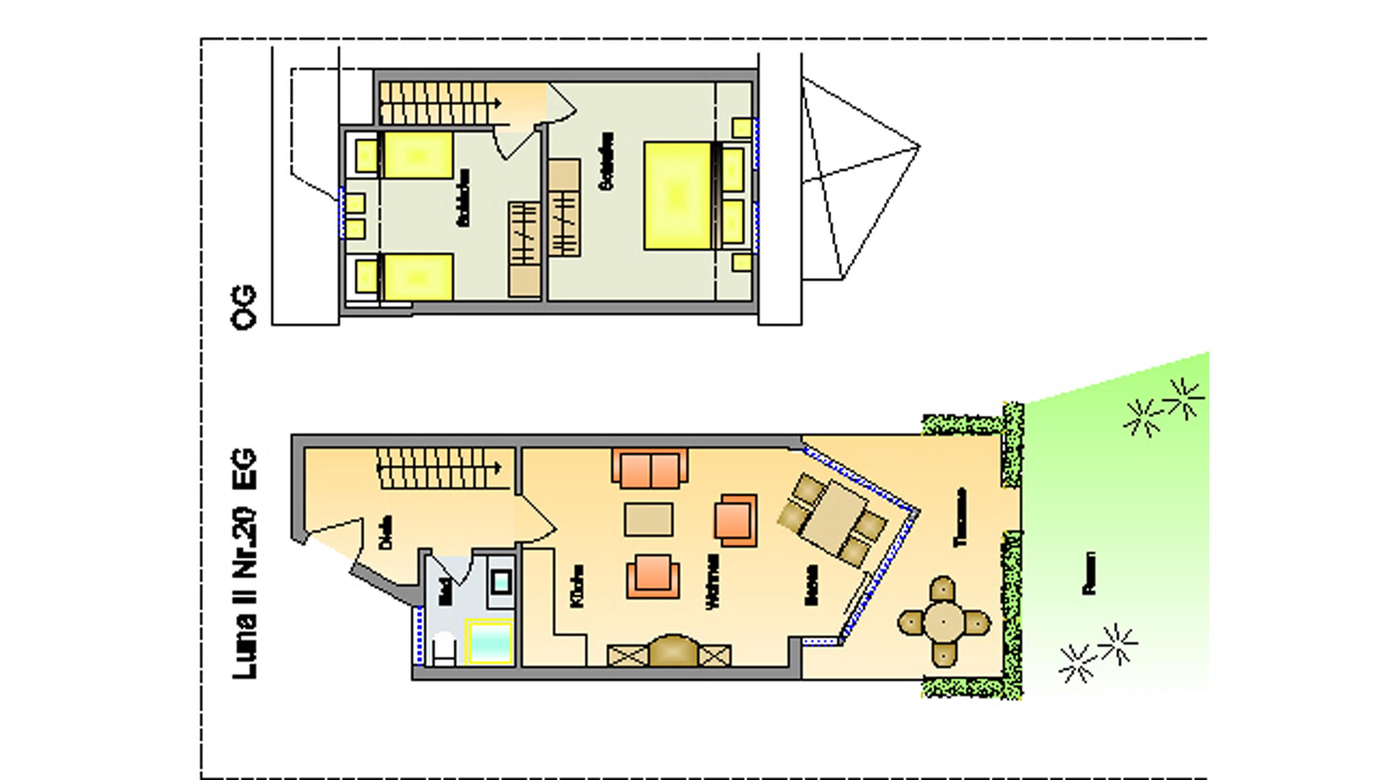 (1 Wohnzimmer, 2 Schlafzimmer, 1 Badezimmer)