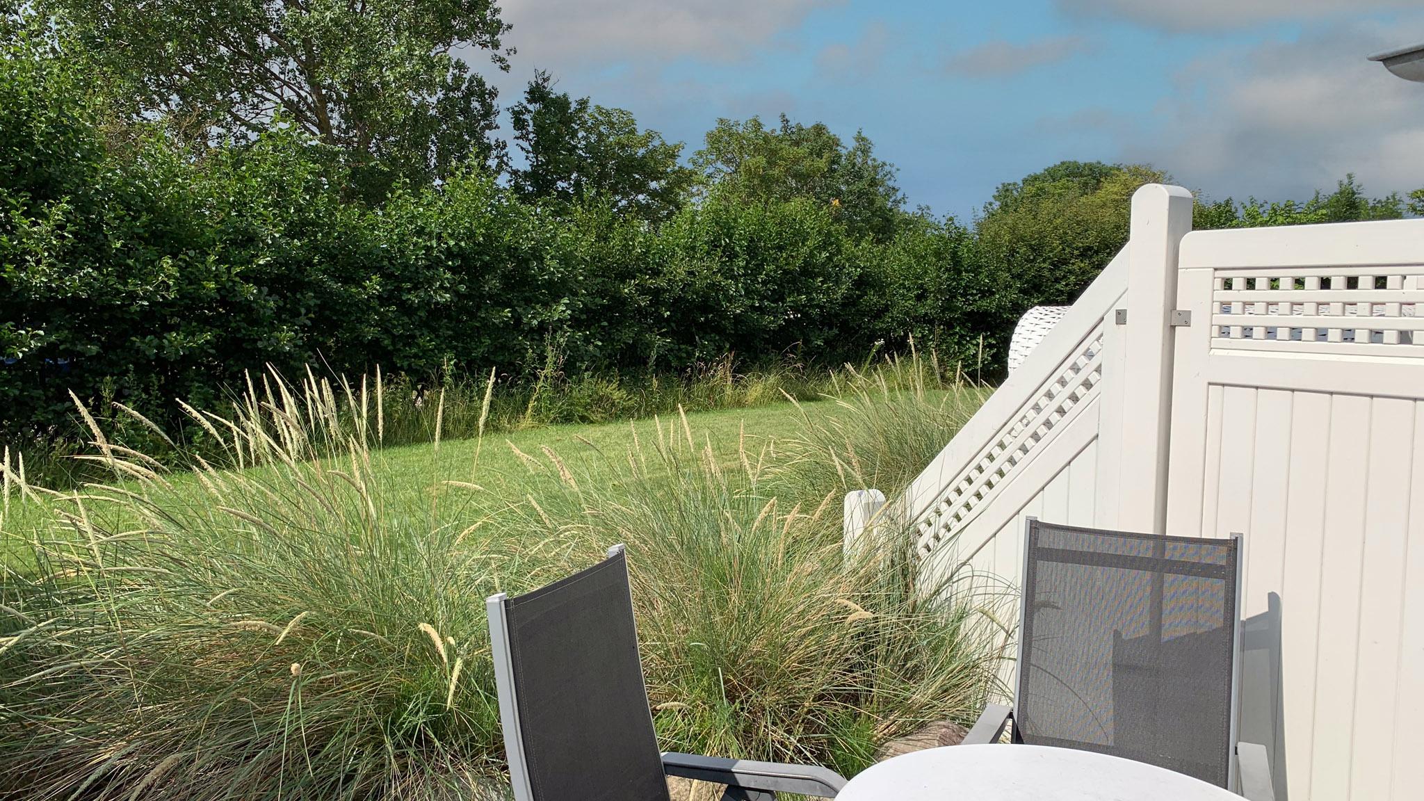 Das über 10.000 qm große Appartementhausgrundstück, eingerahmt von alten, landtypischen Bäumen ist parkähnlich mit Liegewiesen für unsere Gäste angelegt. Ein kurzer Weg, ca 100m, und Sie sind bereits im Dünengelände und am Strand.