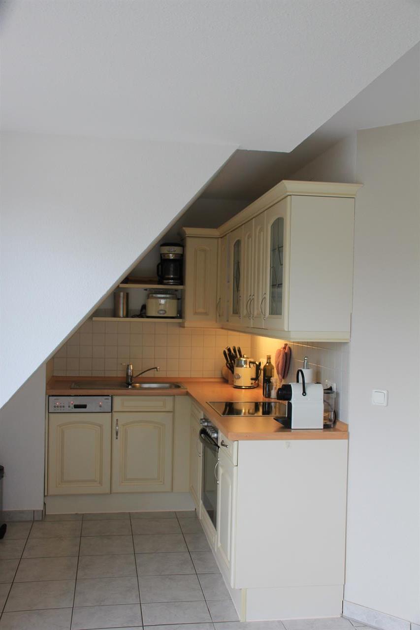 Die kleine Kochecke ist hochwertig ausgestattet mit Geschirrspülmaschine, 4-Platten-Ceranherd und Backofen. Im Wohnzimmer stehen Ihnen ein LED-TV, ein DVD-Player und eine Mini-Hifi-Anlage zur Verfügung. Ein kleiner LED-TV befindet sich auch im Schlafzimmer. Des Weiteren befindet sich in der unteren Etage der Wohnung ein Gäste-WC.